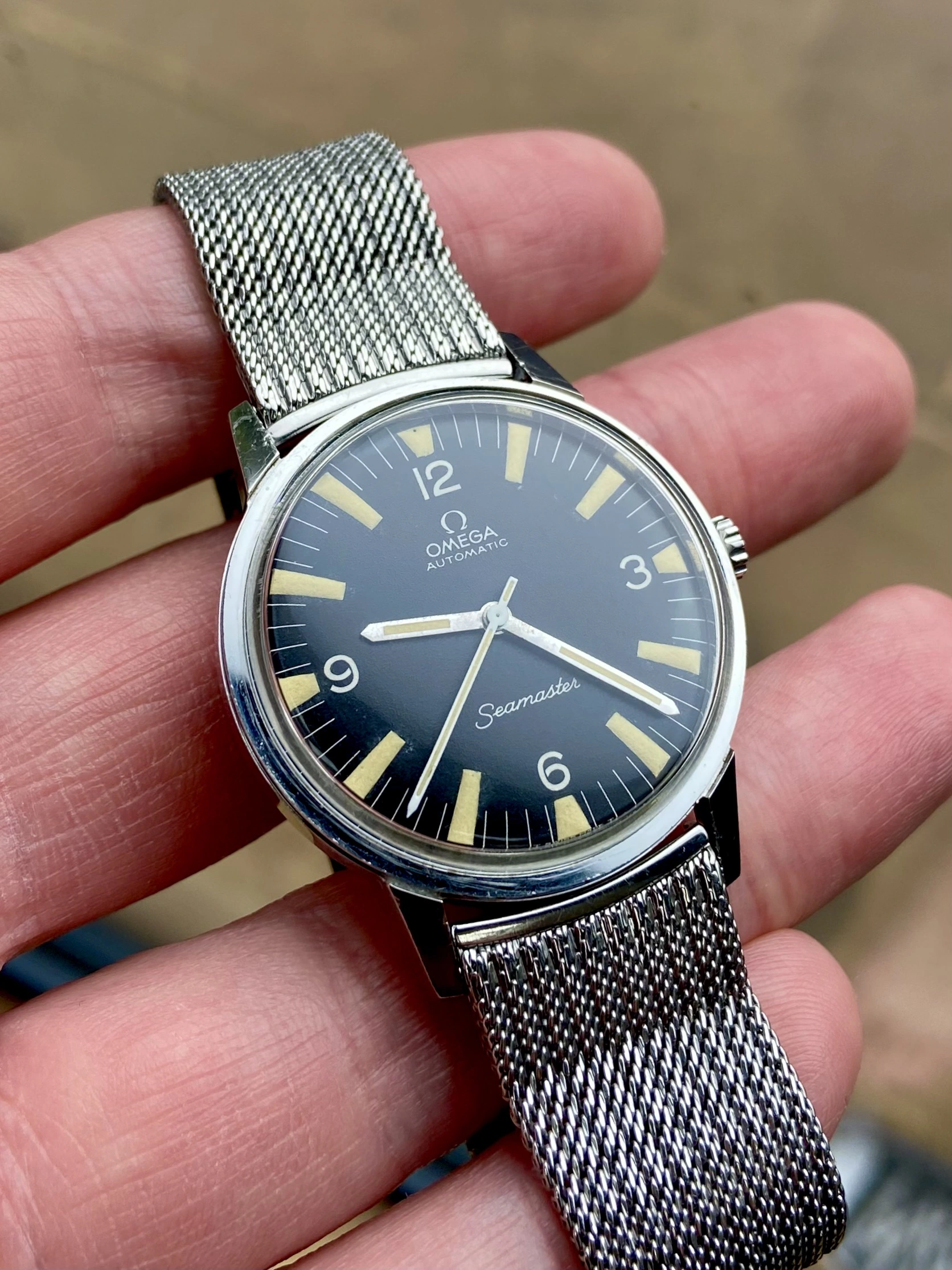 My 2025 Seamaster sell off continues. Here we have an uncommon Seamaster ‘300 Companion’, so called as it has a very similar layout to the Seamaster 300, This one also has the rare, fully lumed seconds hand. These Seamaster 300 Companions are very hard to find in any configuration, but those with the lumed second hand are the hardest to find. This one has been relumed so looks wonderful and all parts are correct and original.