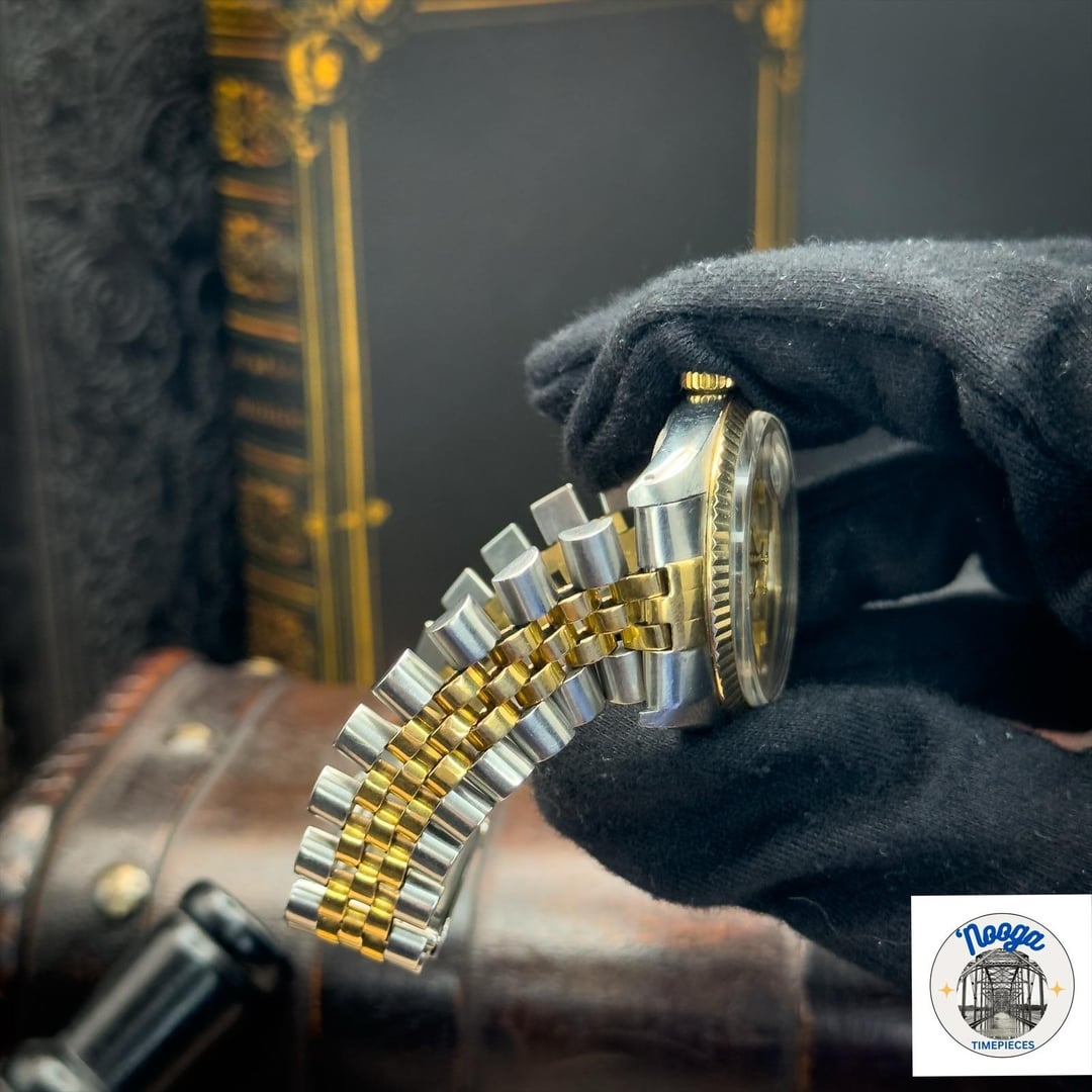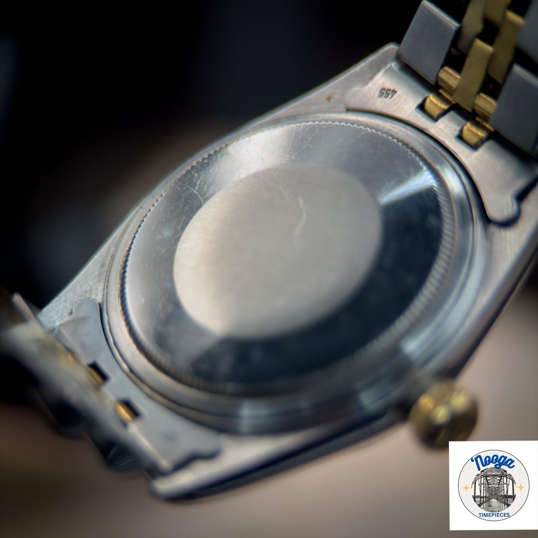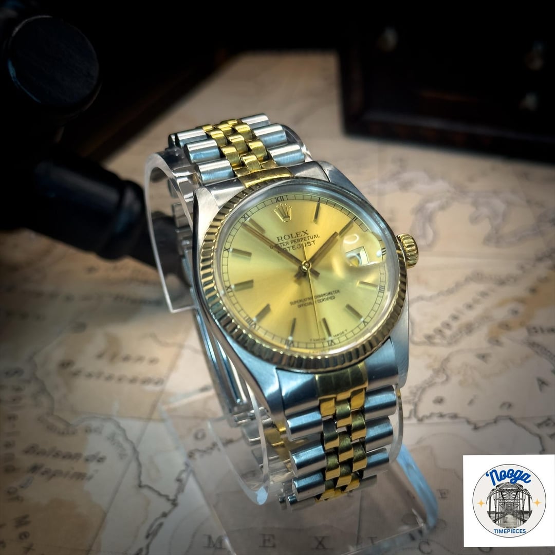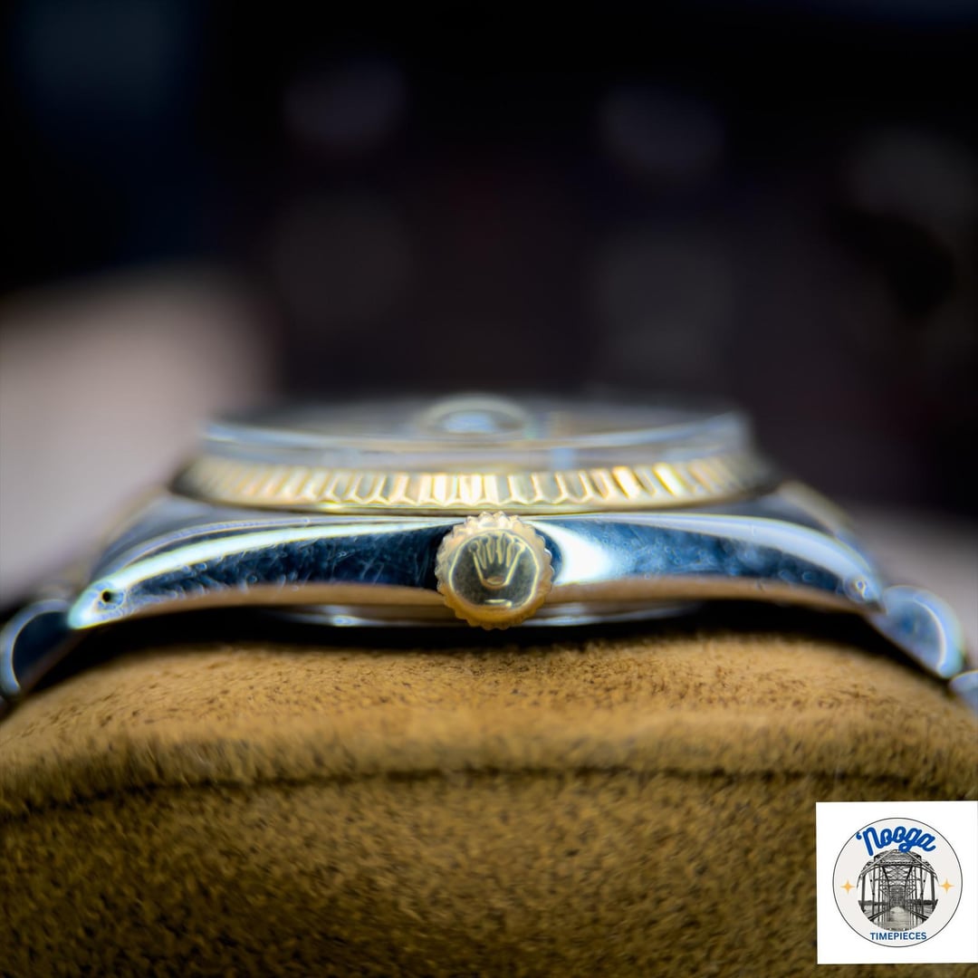 Available now is this excellent Rlx DJ 16013 from 1984. Get this today for 💲4️⃣4️⃣5️⃣0️⃣ shipped in the US. Below are the features. • Model: Rlx DJ 16013 • Movement: Rlx Calibre 3035 (automatic movement with quickset date) • Case: 36mm stainless steel with 18k yellow gold fluted bezel • Bezel: 18k yellow gold, fluted design • Dial: Silver dial with applied hour markers and luminous hands • Hands: Gold-tone hands with luminescent coating • Crystal: Acrylic crystal with Cyclops lens over the date • Water Resistance: 100 meters (330 feet) Vintage • Bracelet: Two-tone (Rolesor) stainless steel and 18k yellow gold Jubilee bracelet with a folding clasp • Functions: Time, date display at 3 o’clock (quickset), power reserve of approximately 48 hours • Special Features: Classic two-tone design with champagne dial, iconic fluted bezel, versatile and elegant for both formal and casual occasions This watch comes as a watch only, with small marks, light scratches from wear on the clasp, case sides and bottoms of the lugs. Crystal is clean with barely noticeable marks. Bracelet fits a 7.25”wrist comfortably. It is available for 💲4️⃣4️⃣5️⃣0️⃣ shipped in the US Overnight.