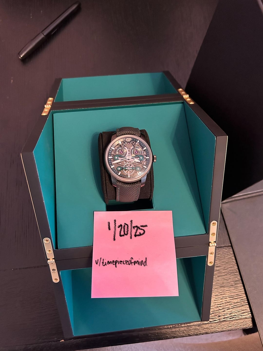 FS: GP Neo Bridges Aston Martin Ltd Edition 250 pcs 84000-21-3236-5CX Price: $27,900 This limited-edition Neo Bridges timepiece was built in collaboration with Aston Martin. While this isn’t the first neo bridges style released, it is a perfect balance of design and beauty. Aston Martin green bridges, markers, and strap stitching combined with an overall stunning movement really set this timepiece apart. The balance wheel is prominently on display in the 6 o’clock position as the main attraction. Limited to only 250 pieces, own a piece of modern art for your wrist. This watch is in truly excellent condition. Please review the pictures closely for accuracy. It comes as a set with double box (with special edition box), booklet, and special edition certificate. This watch ships overnight priority FedEx fully insured within 2 business days of cleared funds. Wire or Zelle only. Open to trades. I deal with absolute transparency and welcome any communication regarding the watch. I am an avid timepiece collector with references on forums and Facebook Groups. Charlotte, NC