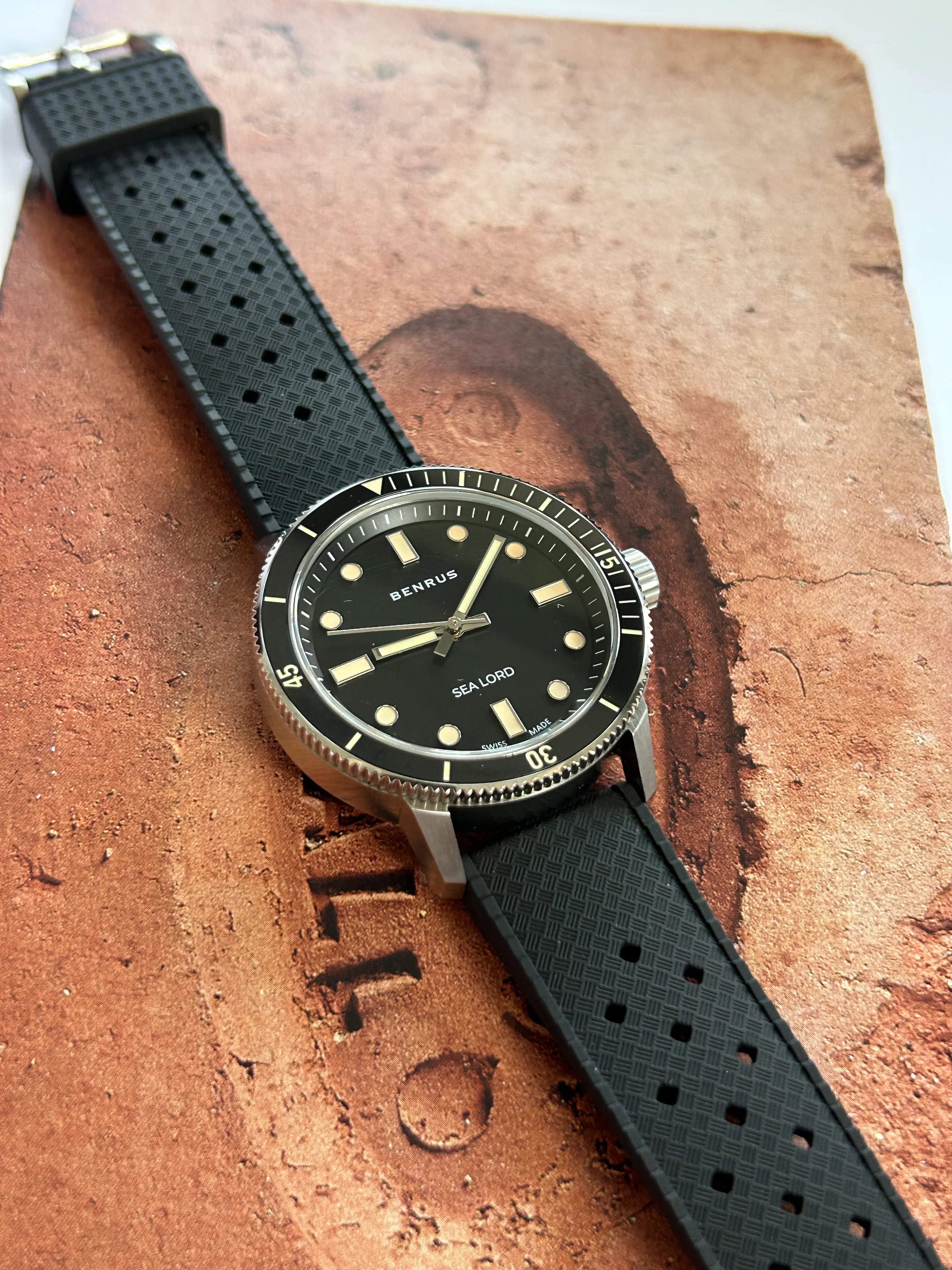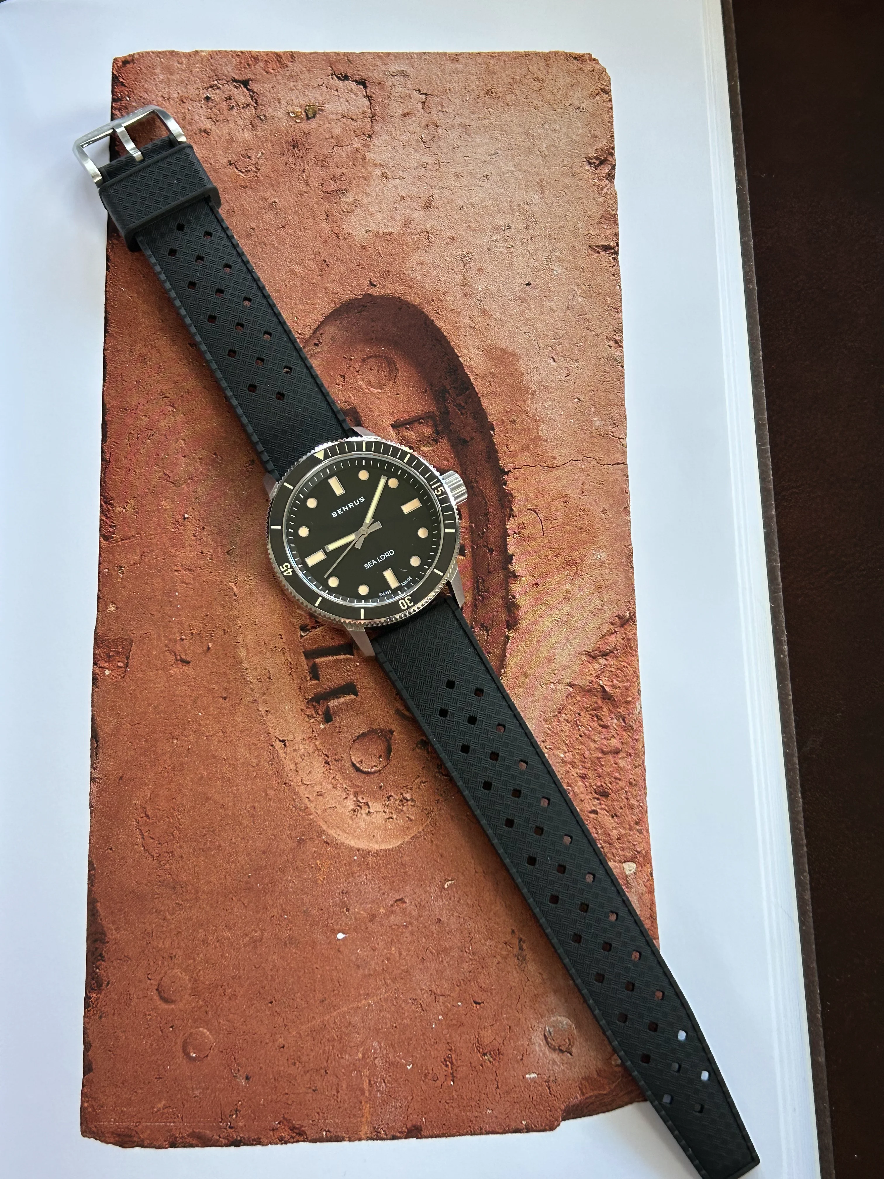 I like the story of the Benrus company..."Benrus" is a portmanteau (word of the day!), a blend-word of the name of the cofounder: Benjamin Lazrus. Benjamin and his two brothers founded a watch repair business in NYC in 1921 and went on to manufacturer their own. Lots of interesting details in the company's history, including some beef with Hamilton, and most everyone knows them for their use in the US Military and a particular Steve McQueen movie. Like many smaller companies it experienced numerous acquisitions and changing-of-hands, and was recently re-booted in 2022.