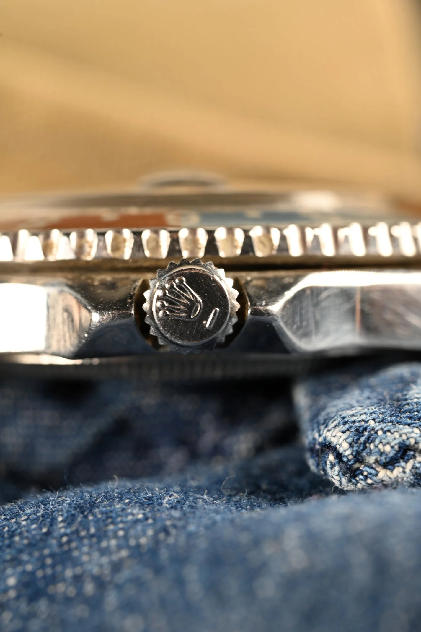DIAL: Type C, open chapter ring, gilt dial. This dial is the last of the gilt era GMT's and is original fitting within the accepted serial range. This Type C dial variant is the more rare of the two with the wide spread "Swiss T < 25". The dial is completed by its original, gilt, flat handset. The lume on the dial is original to the watch and has aged to a charming, warm deep orange patina. It is presumed the hands were relumed decades ago. In some lighting they appear to match the dial. In other lighting they are a bit more green.