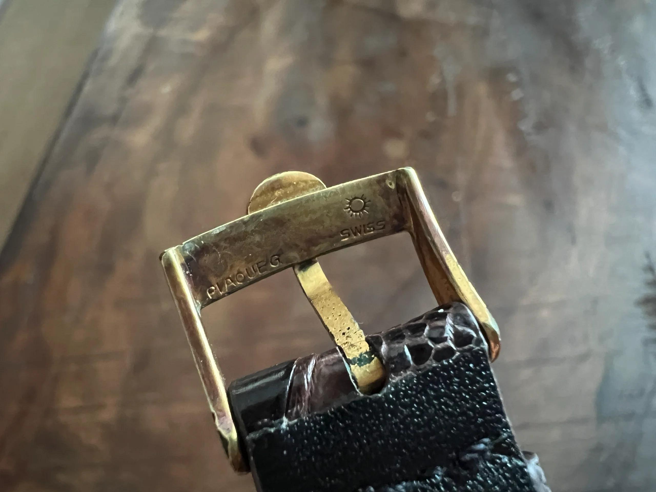 Buckle: Original and period-correct Omega gold-plated buckle.