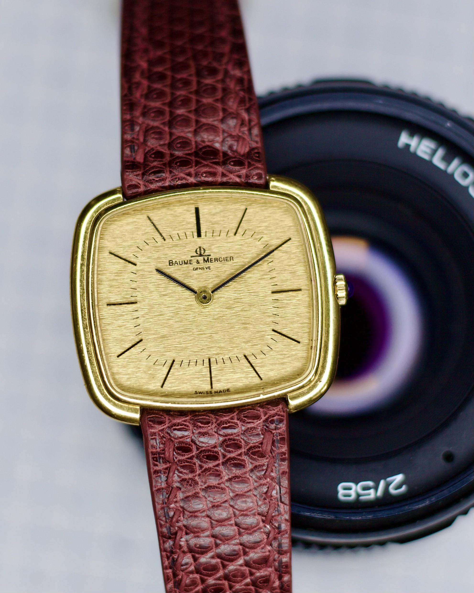 Baume & Mercier ref. 37089 solid 18k gold Not only a solid 18k gold piece, but it is also substantially sized—the best way is to consider lug width at 18mm gives a dress piece more presence. Overall, no damage and honest wear with no signs of over polish. These 1970s pieces are becoming very desirable, especially with precious metal and an exotic dial. Video, timegrapher, 6.7in wrist roll: https://drive.google.com/drive/folders/1-4ihnZh8-M5Nv9gh5lIJXNNJ9Yq1WCqO?usp=drive_link Timestamp: https://imgur.com/a/HUvsKuO * 33mm case X 30mm height X 6.7mm thicc * 18mm strap * manual wind * All sales final unless the watch is misrepresented or lost in transit (always fully insured) * Link to feedback here & watchcharts here Asking a negotiable 💲1️⃣4️⃣0️⃣0️⃣ via bank wire, Zelle, venmo, or possibly PayPal Friends & Family with super strong references or if I know you. Price includes fully insured Fedex shipping in the USA— hand delivery in most of the Los Angeles or Orange County areas with drinks or coffee on me ;). Cheers, Stephen
