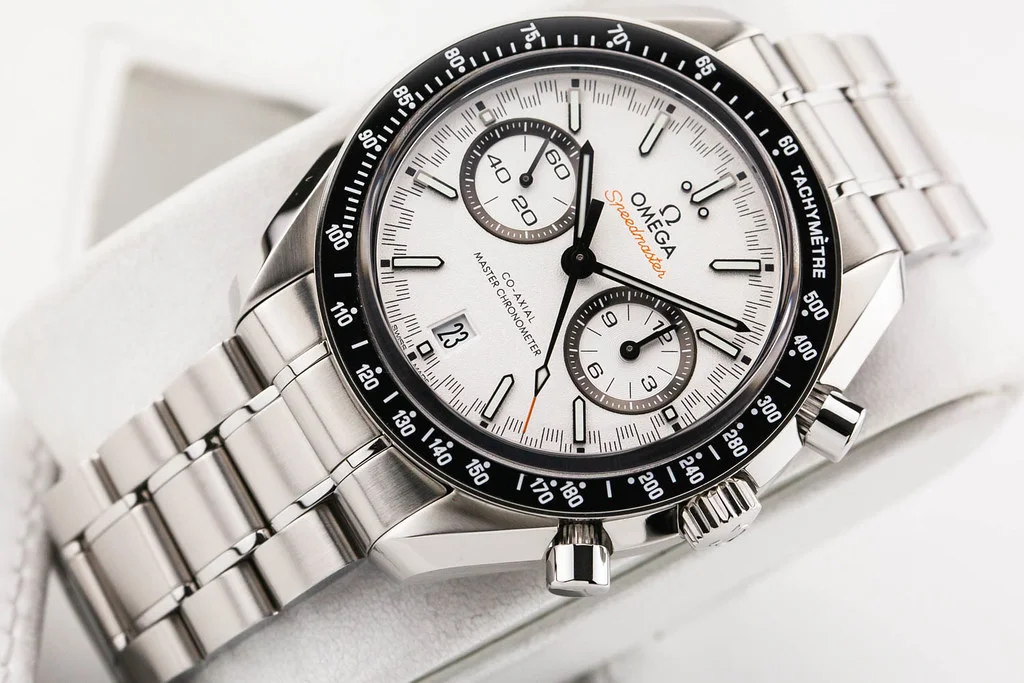 Up for sale is an excellent condition Omega Speedmaster Racing Master Co-Axial in White Dial, reference # 329.30.44.51.04.001. It comes complete with all boxes, papers, booklets, hang tag and Omega Warranty Card dated June 2024.