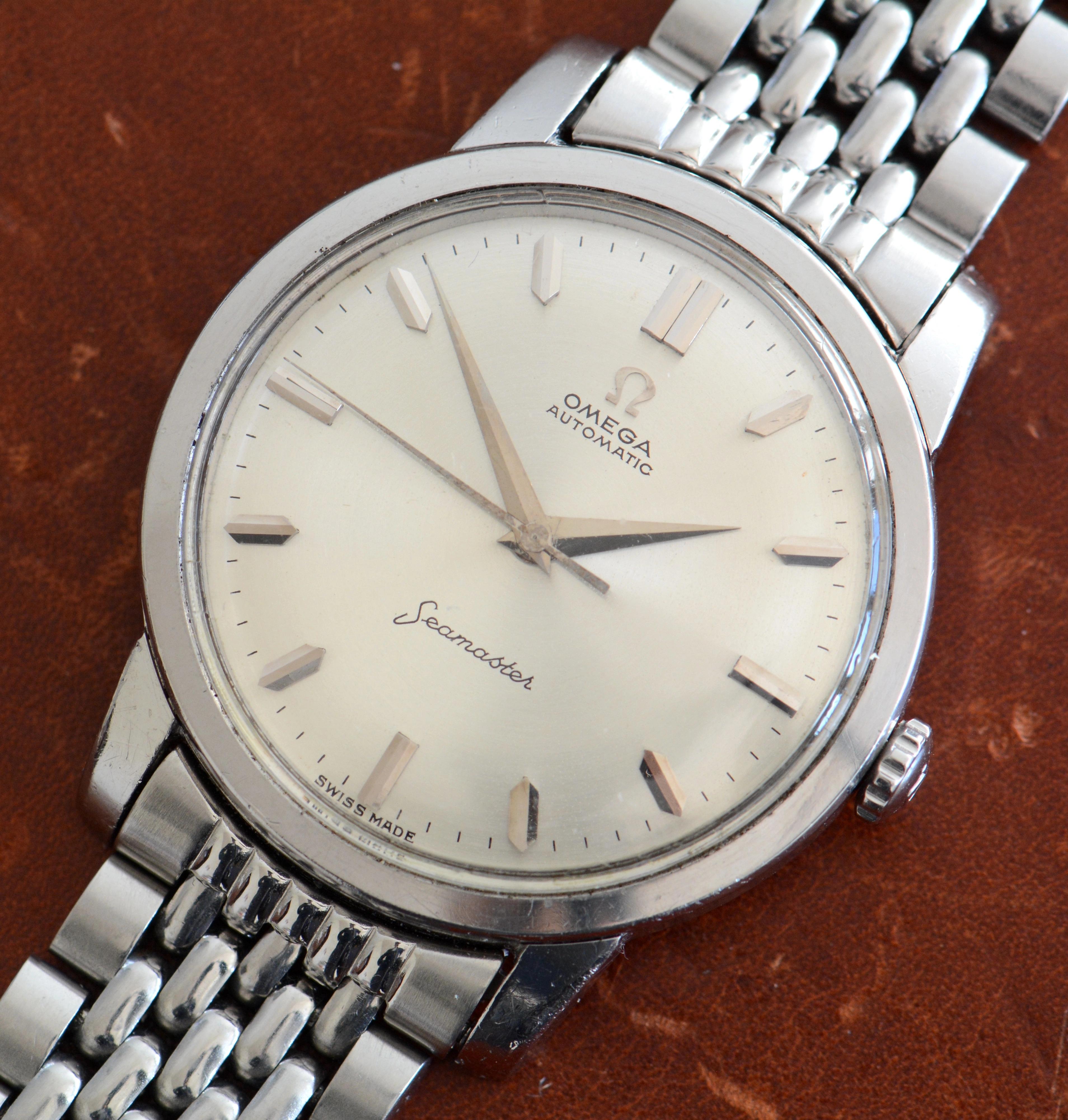 I'm a fan of larger or "Jumbo" Seamasters. As I bought three last year, I decided let one of them go. For your consideration is a nice steel Omega Seamaster ref. 165.011 with an uncommon dial, i.e. with a circular finishing rather than the more common sunburst or vertical finishing. It is complemented by an original Omega BoR bracelet.