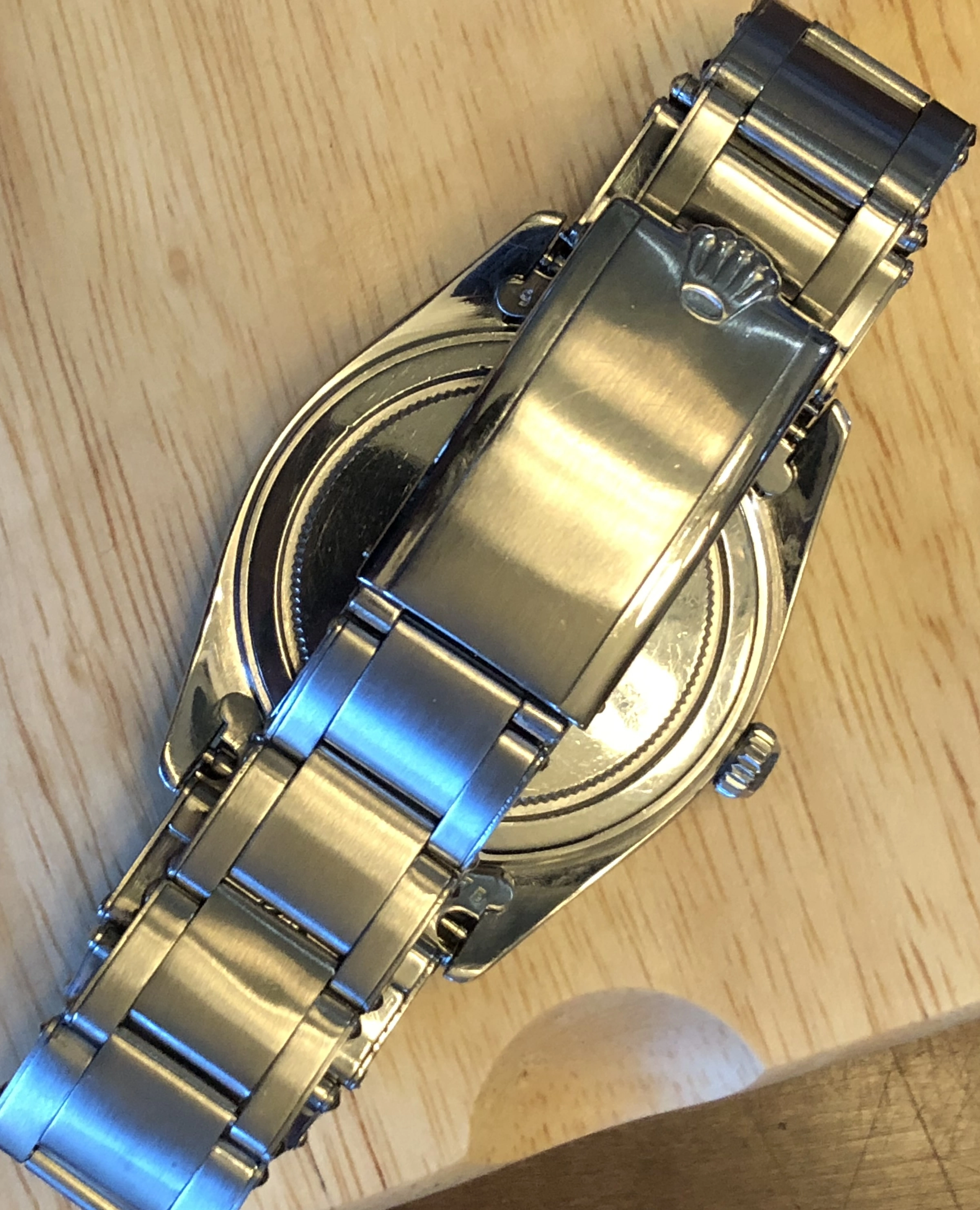A significant part of the value is the original Swiss rivet 7206 bracelet with 20mm endlinks. The clasp has a 1 65 date code consistent with the serial number of the case. The bracelet is full length and it was restored to excellent condition. As you know, in this condition, these bracelets generally sell for at least $2500 alone.