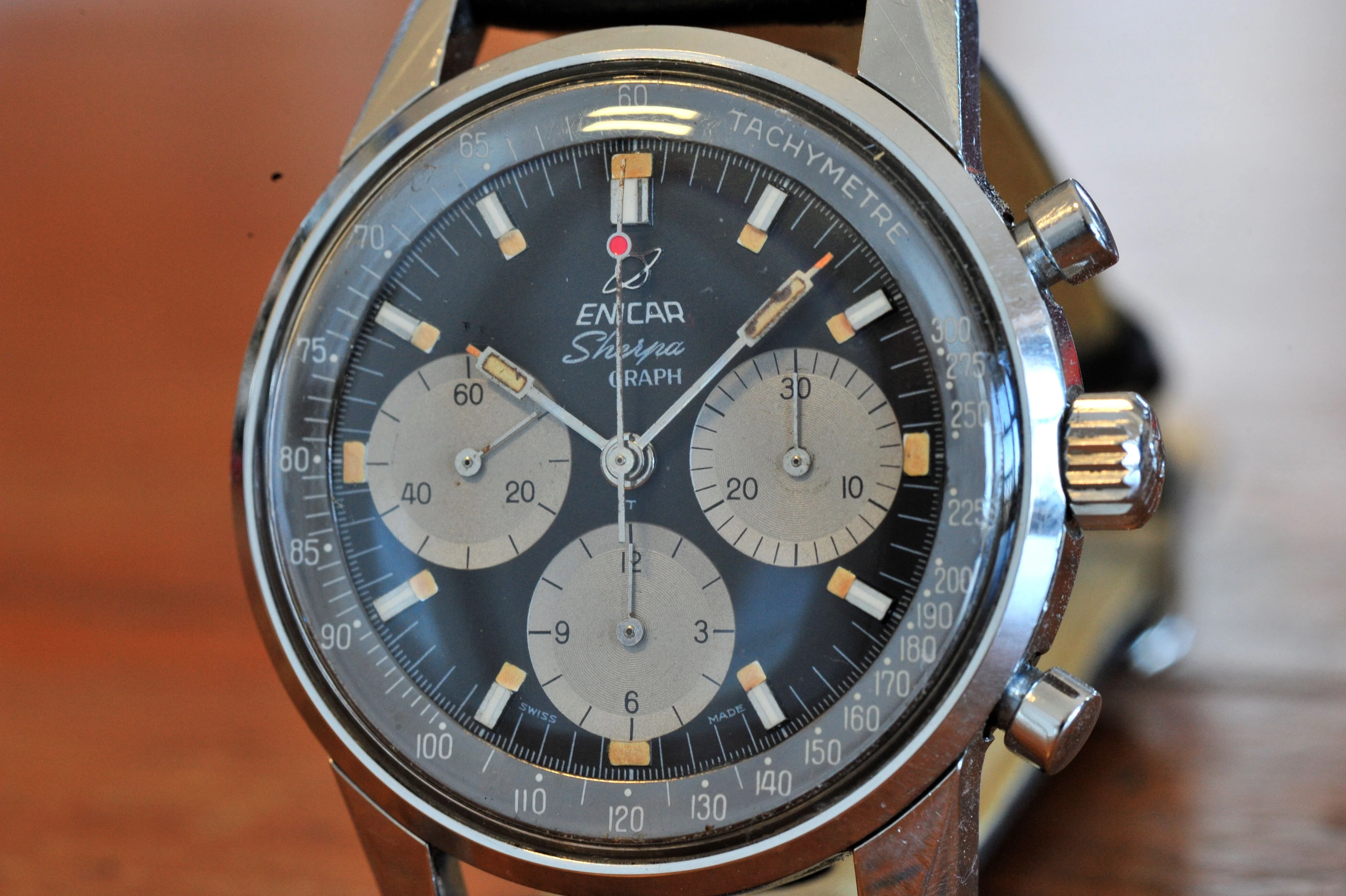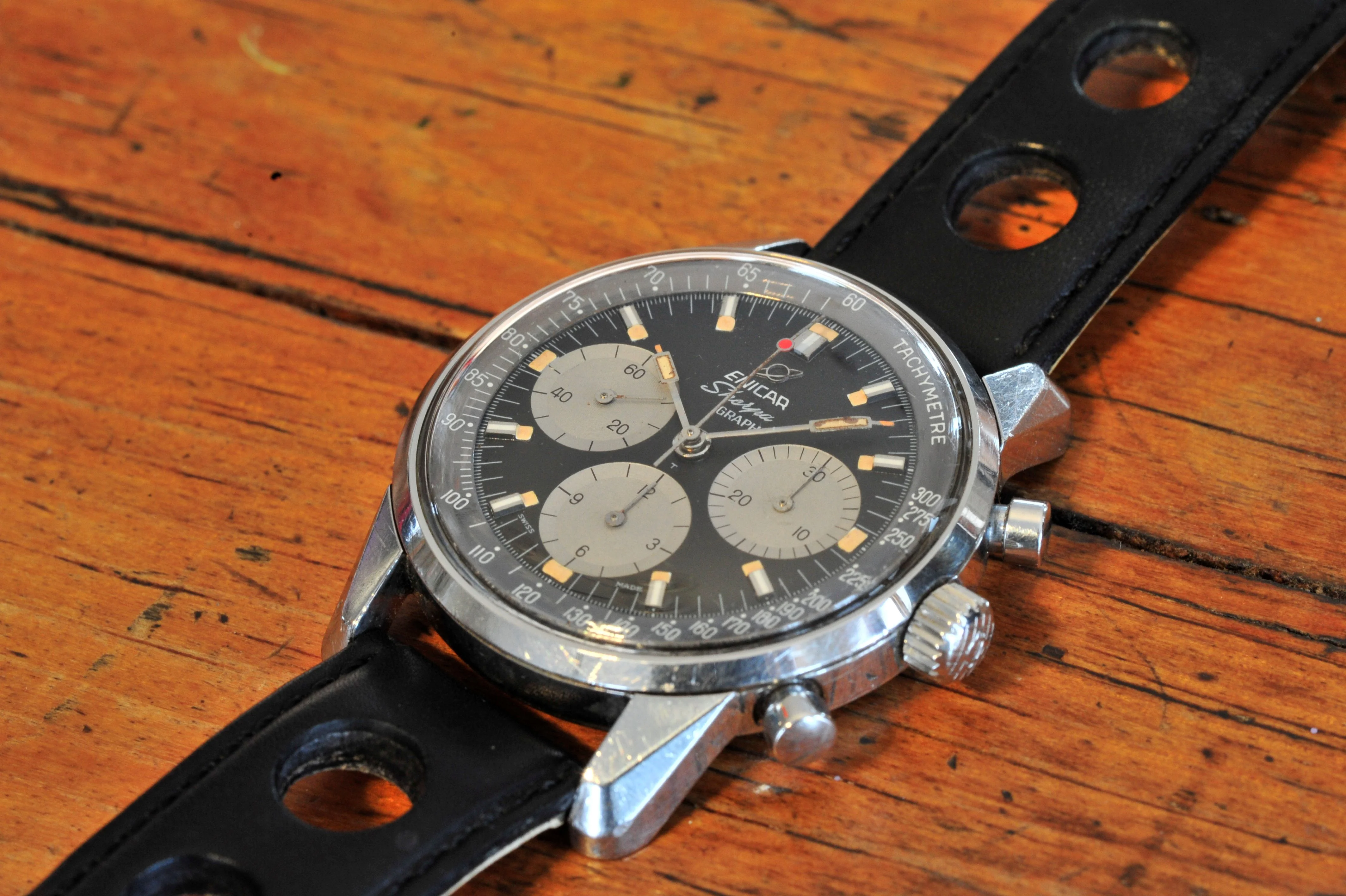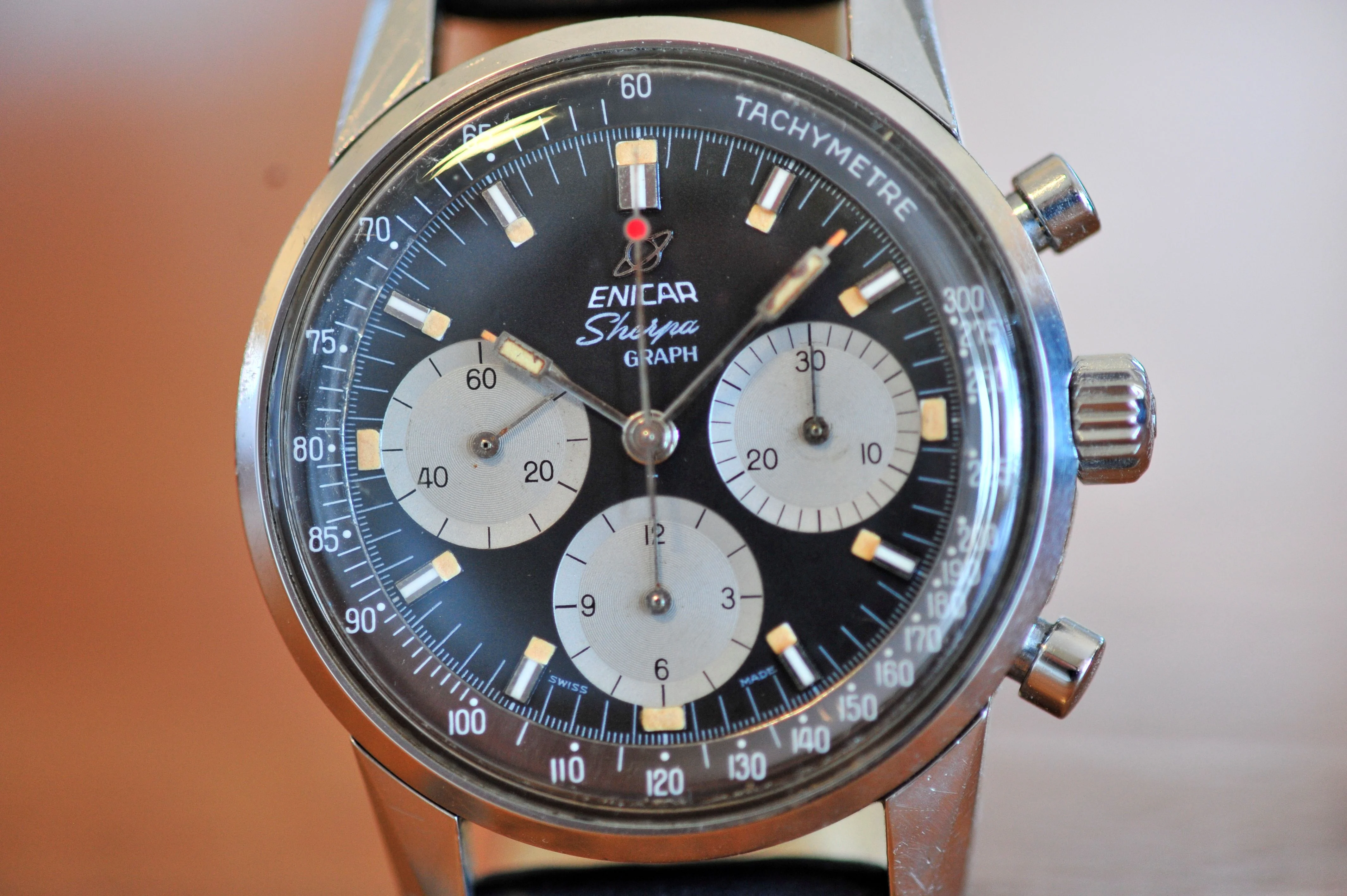 | 1960's Enicar Sherpa Graph Mark III 072-02-01 Manual Watch Black Dial belmont_watches (553) |