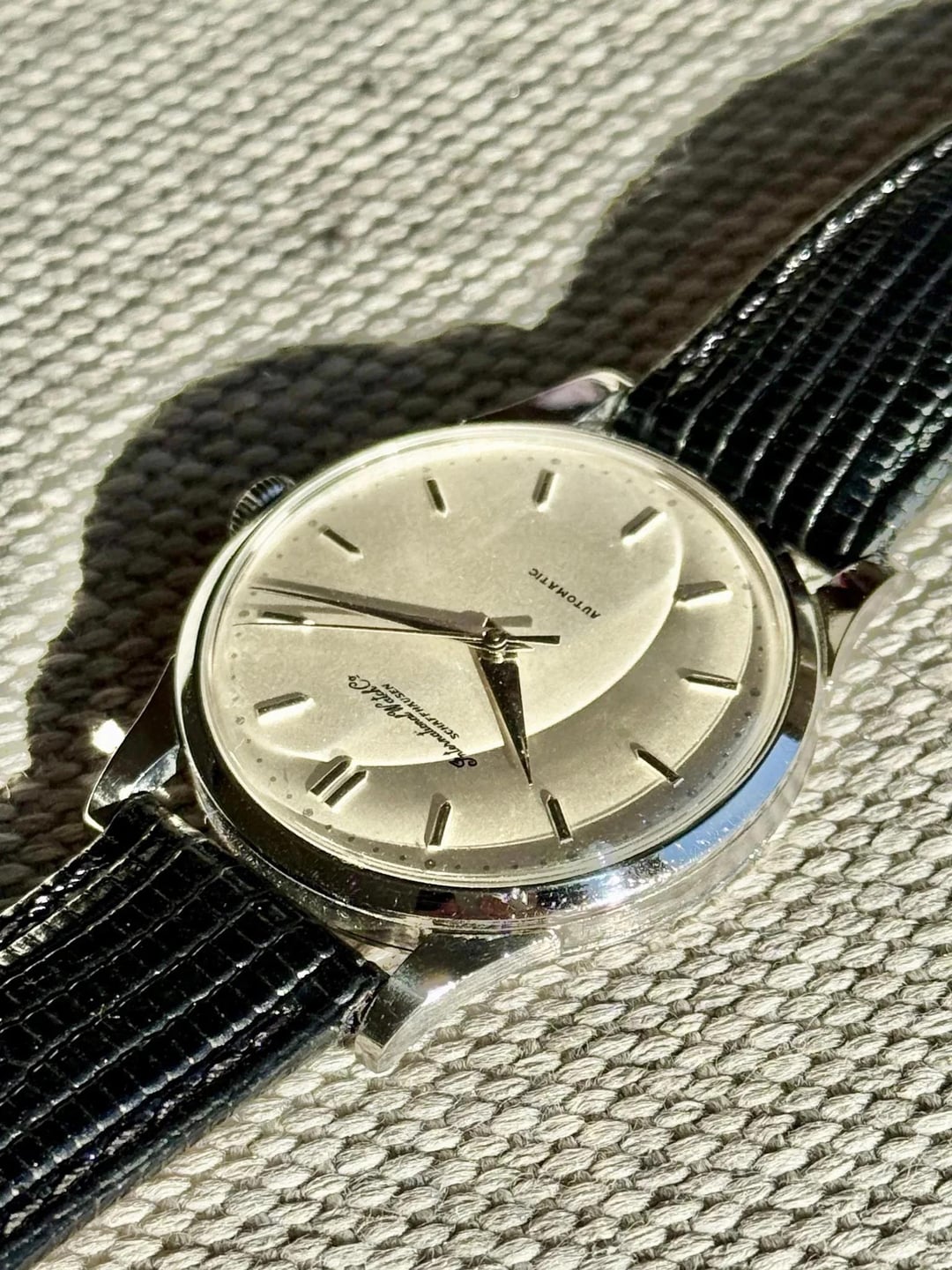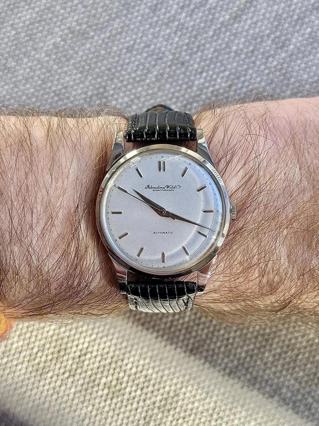 # 1960 IWC Platinum cal. 853 Video: [https://youtube.com/shorts/Fsr7KnKKfks?feature=share](https://youtube.com/shorts/Fsr7KnKKfks?feature=share) Selling this beautiful vintage IWC piece with solid platinum case and caliber 853 automatic movement. The interesting thing about the case, other than platinum being the rarest precious metal used in watches, is that during this time period import duties were very high on platinum. So IWC contracted with their distributor in Japan, Isomura, to manufacture the case and shipped the incomplete watches to Japan for final assembly as Japanese domestic market (JDM) watches. These watches are denoted with a small Japanese flag on the inside of the caseback, and are very rare in platinum. This is about the largest version of a vintage platinum IWC that I’ve come across, with a case measuring 35mm wide with a 43mm lug to lug length. It’s 10.1mm thick including the crystal, with 18mm lug width. Given the large dial area, elongated lugs, and highly polished platinum it has a ton of presence on the wrist. Wrist shot on my \~6.75" wrist provided for reference on the sizing and how it wears. Movement serial dates this to 1960, the movement has been running at minus a few seconds a day for me, and winds and sets smoothly. **Imgur album**: [https://imgur.com/a/1960-iwc-platinum-BvAiywI](https://imgur.com/a/1960-iwc-platinum-BvAiywI) **Timestamp**: [https://imgur.com/a/aTuZf0j](https://imgur.com/a/aTuZf0j) I’m asking **$2,495 shipped** in the US via wire, Zelle, or Venmo. I will ship internationally and only charge the difference in cost on top (Wise accepted for international payments). I’m not interested in trades. Feel free to reach out with any questions!