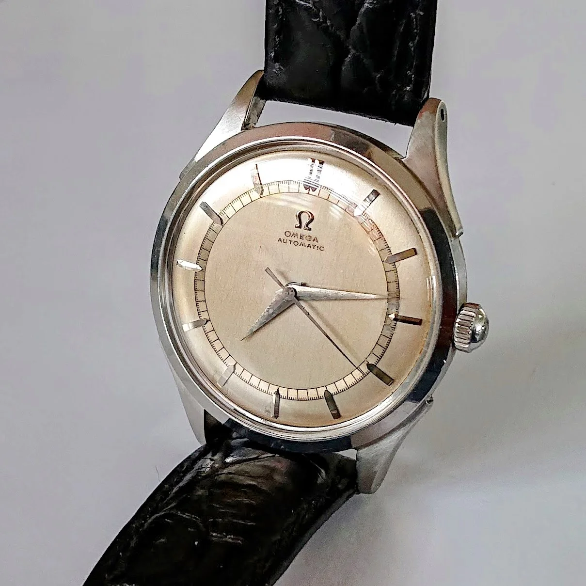 Selling my OMEGA Bumper Automatic, Ref. 2421/2 (2421-2), featuring a beautiful two-tone dial with railroad minute track.