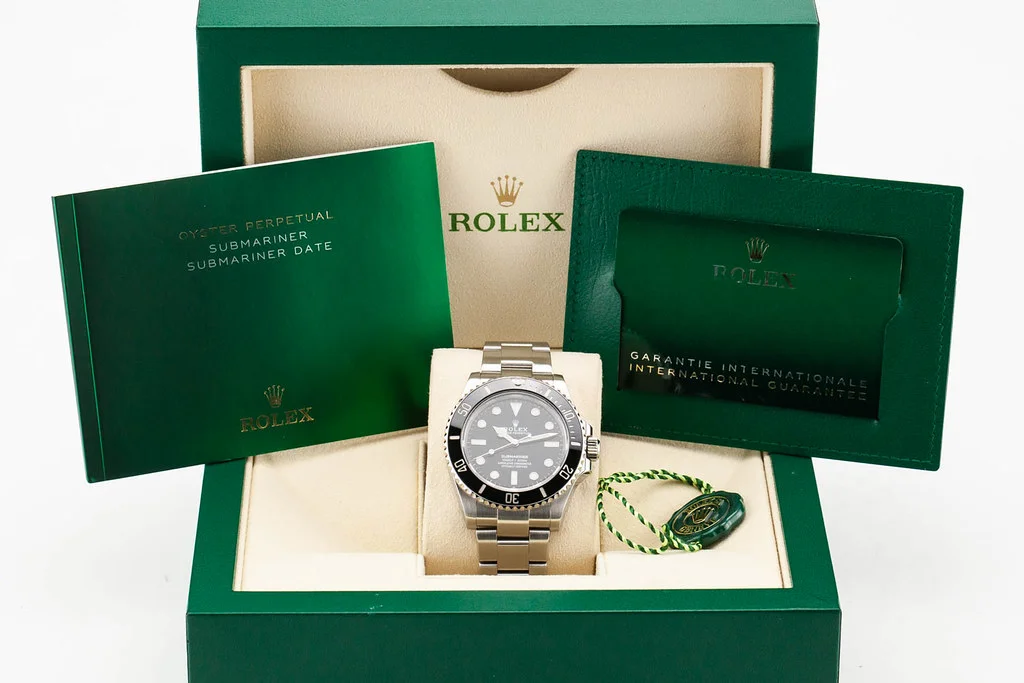 Up for sale is an excellent condition Rolex Submariner No Date 41mm Ceramic, reference # 124060. It comes with all boxes, papers, booklets, hang tag, and Rolex Warranty Card dated October 2020.