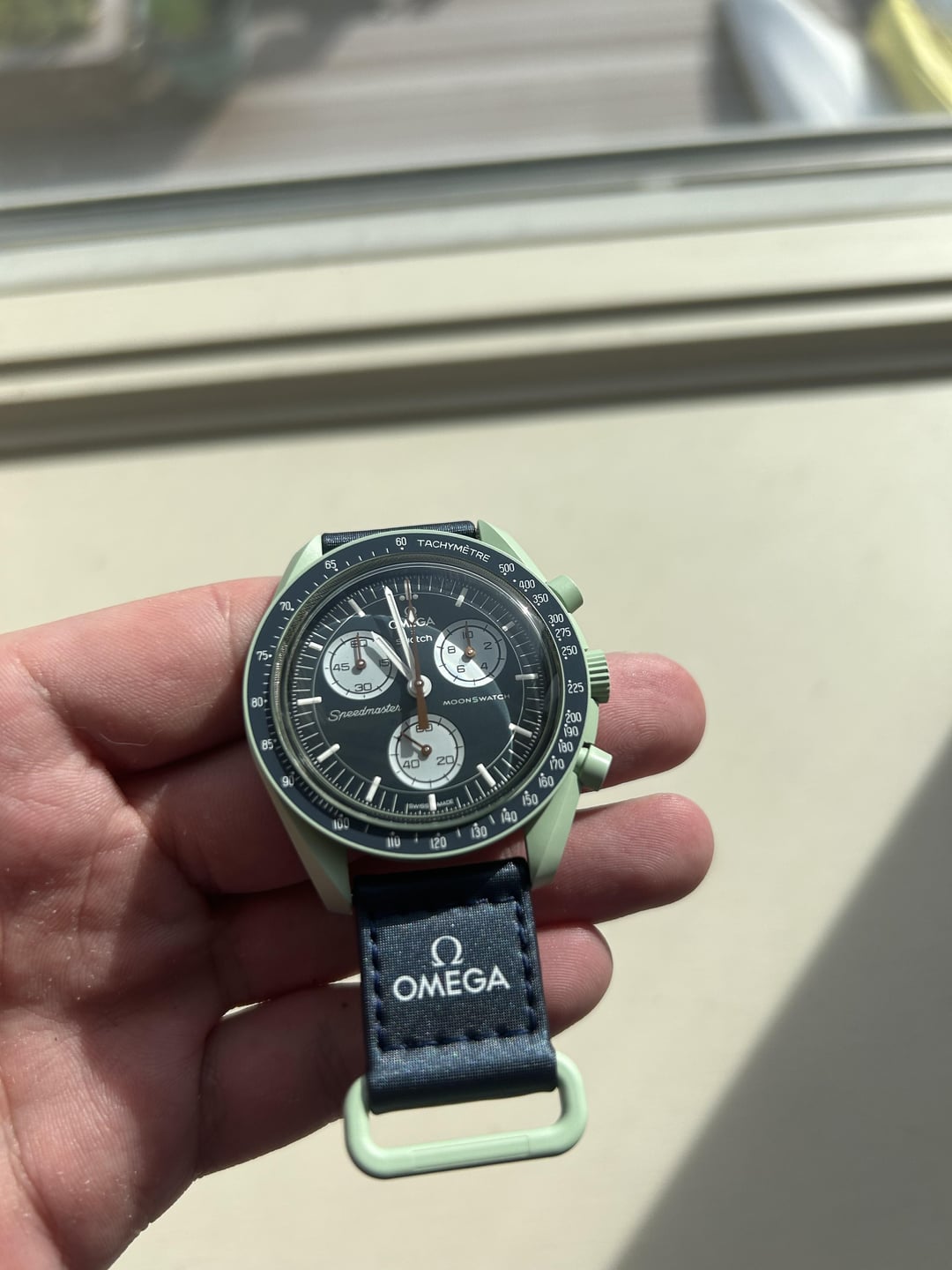 Selling Mission on Earth Moonswatch. Had fun collecting the Moonswatches but I never wear them so it’s time to pass them on to someone who will get some use out of them. Watch is in perfect condition and has only been worn a handful of times. Under warranty until April of 2026. Asking 200 usd via Venmo, Zelle, PayPal. Free shipping for untied states. Pm with any questions