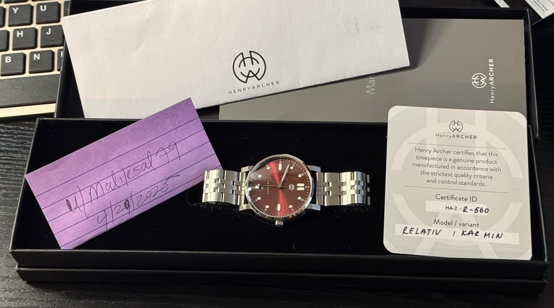 ![Thumbnail [WTS] Henry Archer Relativ Karmin (Excellent Condition) 2](https://cdn-cf.watchpatrol.net/120x120/img/full/2fa9d865bd7a4c983440613f63bc41d01ec44af9.jpg)