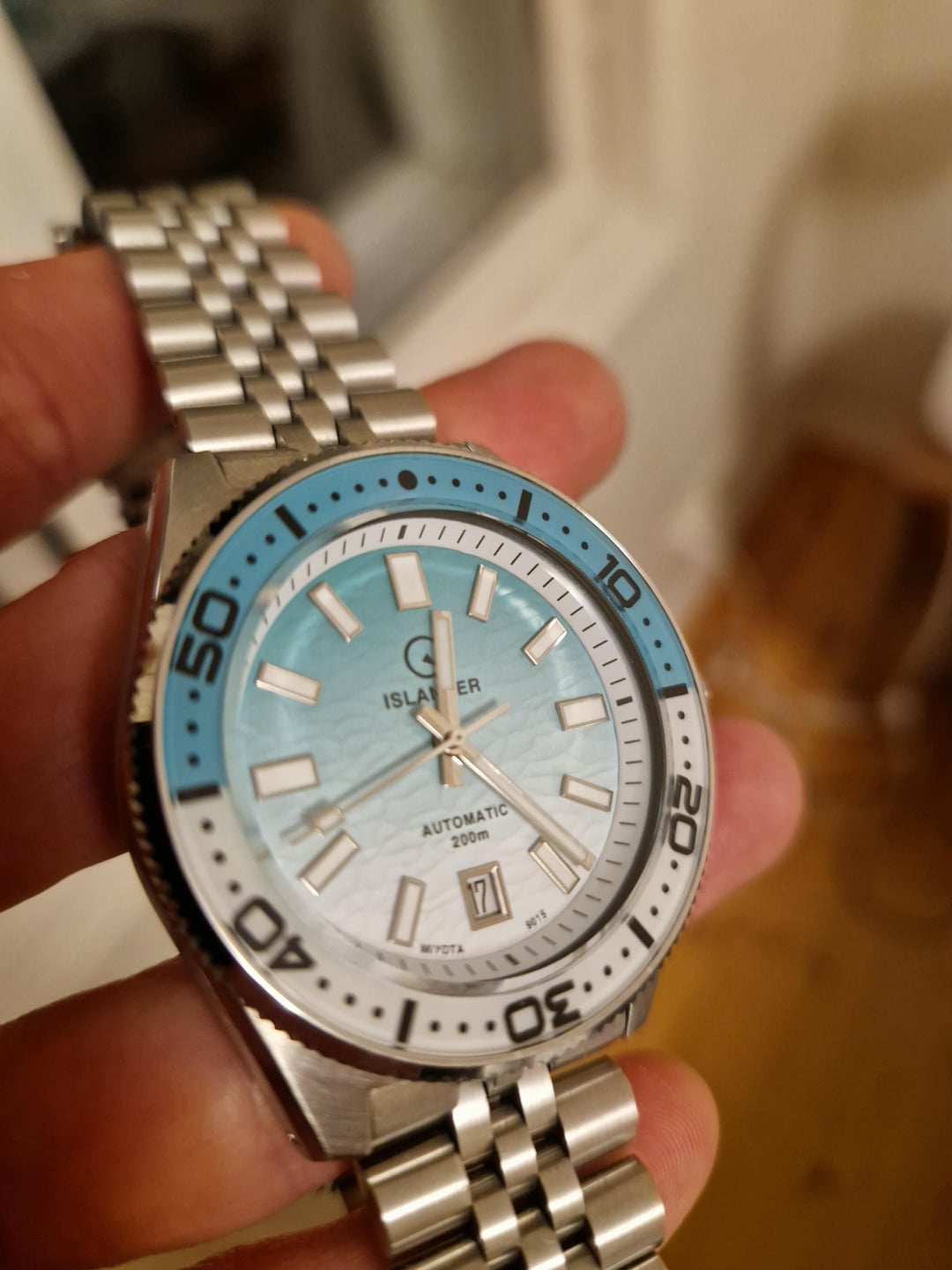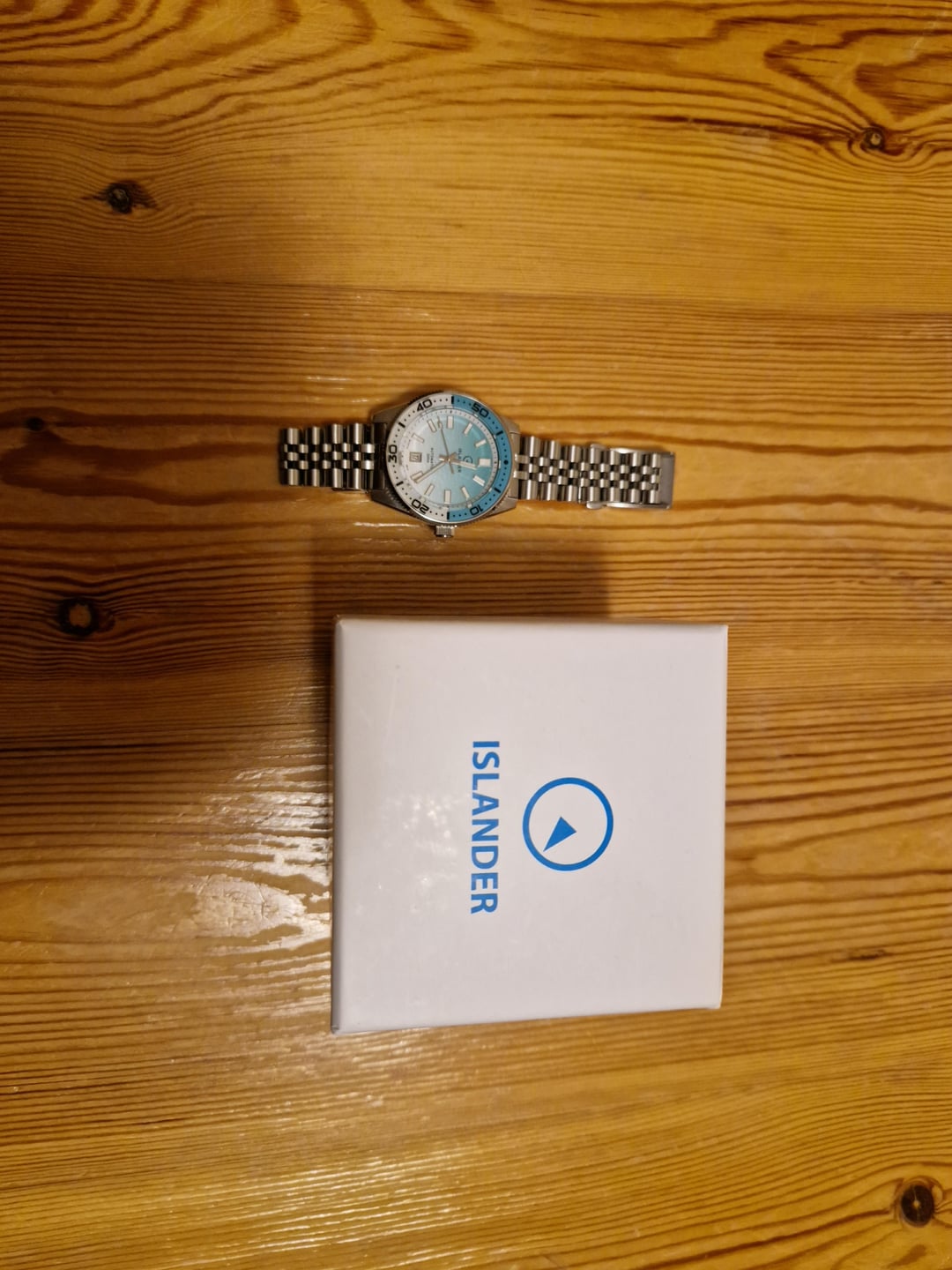 Offering up this Islander ISL-195 Northport. Beautiful two colour design and dial with ripple effect. Comes on the original stainless steel bracelet. The watch is in excellent condition and comes with its original box. My asking price is 350$, but I am open to offers. Watch is located in Finland.