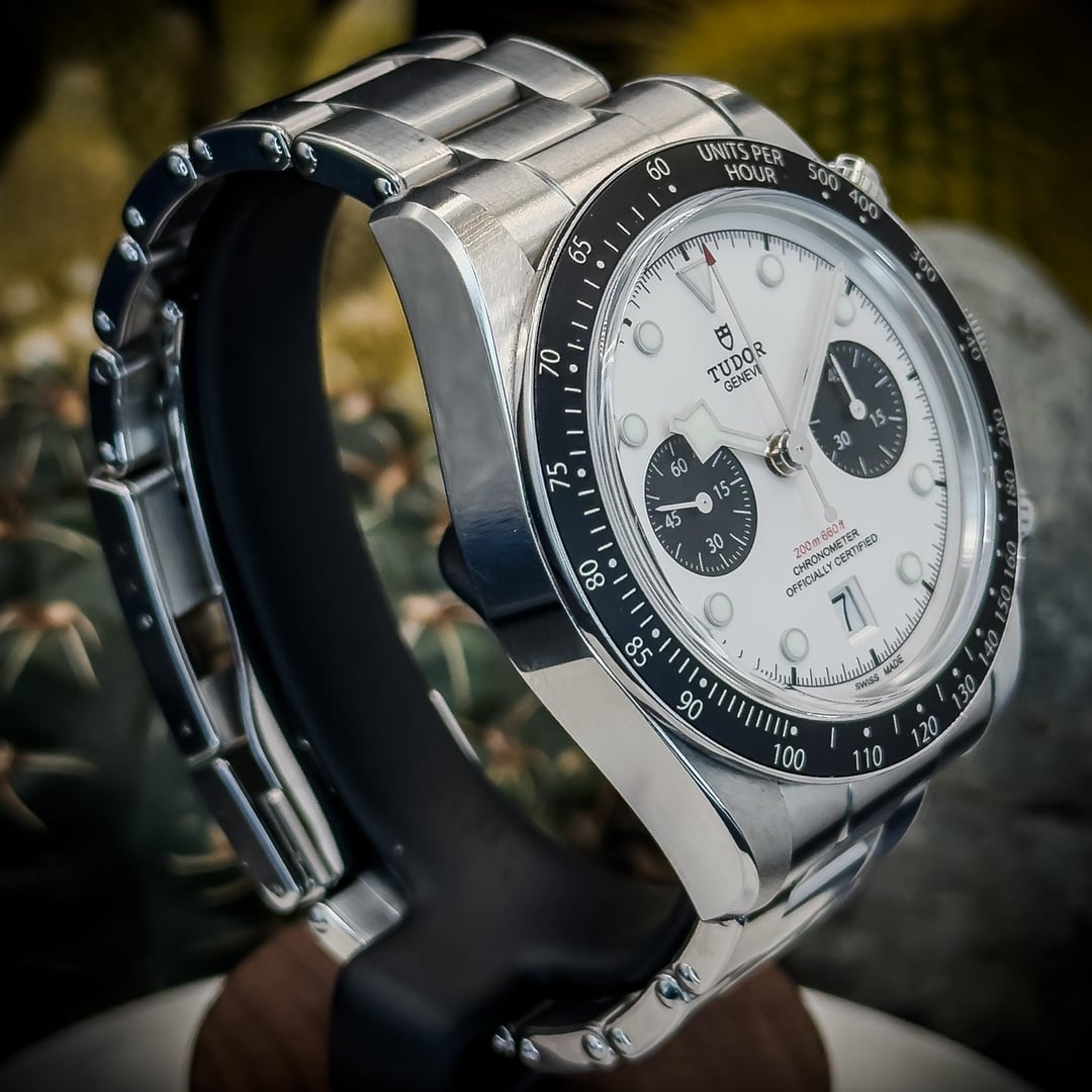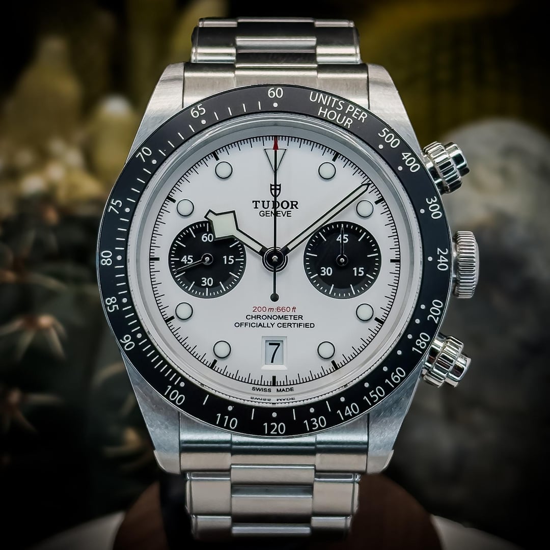 Tudor Black Bay Chrono “Panda” – Ref. 79360N (M79360N)– Complete Set, Excellent Condition 41mm Stainless Steel Case | MT5813 COSC Automatic Chronograph | 70-Hour Power Reserve White Opaline “Panda” Dial with Black Subdials | Fixed Tachymeter Bezel | Sapphire Crystal | 200m Water Resistance   Pricing Asking: $3995 Trades Always Considered   Description The Black Bay Chrono reference M79360N-0001 - 79360N - offers the perfect fusion of vintage-inspired design and modern performance. This model features the highly sought-after white opaline dial with black subdials, often referred to as the “Panda” by collectors. The aesthetic is both sporty and classic, drawing inspiration from mid-century chronographs while delivering contemporary reliability and robustness.   Condition Excellent Pre-Owned – Light signs of wear from careful use. Dial is clean and crystal is perfect. Watch is running accurately and well within COSC specs.   Complete Set Includes * Inner and Outer Boxes as well as the outer sleeve * Tudor Warranty Card (Dated 2021) * Instruction Booklet * Official Chronometer Certification Booklet * Stainless Steel Bracelet with Folding Clasp * Full Set of Links     Shipping & Payment Ships from Scottsdale, AZ – Priority Overnight via FedEx Payment options: PayPal, Bank Wire, Venmo, Zelle, Crypto   Authenticity Guarantee Every watch we sell undergoes a thorough inspection and is guaranteed 100% authentic and as described. All images are taken by Cactus Luxe Collective LLC and are owned by us. Images are copyright Cactus Luxe Collective, LLC.