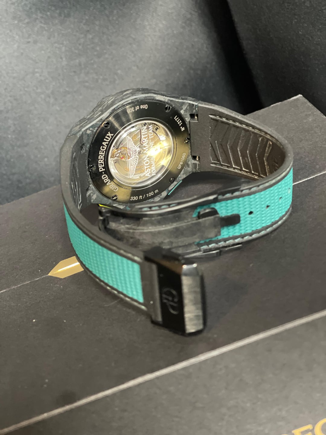 Hello everyone, For sale is a **pre-owned Girard-Perregaux Laureato Absolute Chronograph "Aston Martin F1 Edition"**, a stunning limited edition collaboration between Girard-Perregaux and Aston Martin Formula 1. Only **306 pieces** were made worldwide. More detailed images & videos : [https://imgur.com/a/vqaCRFb](https://imgur.com/a/vqaCRFb) **Details:** * **Model:** Laureato Absolute Chronograph Aston Martin F1 Edition * **Reference:** GP03300-1058 * **Case Size:** 44mm * **Case Material:** Forged Carbon with Titanium * **Water Resistance:** 100m / 330ft * **Movement:** Automatic GP03300 * **Crystal:** Sapphire * **Caseback:** Exhibition, engraved with Aston Martin branding * **Strap:** Green hybrid rubber/fabric with black folding clasp (original) * **Condition:** Excellent pre-owned condition, no defects * **Warranty:** Valid guarantee card included * **Box/Papers:** Full set – original box, guarantee card, and all booklets **Price:** **$18.000** (Open to reasonable offers, no trades) **Shipping & Payment:** * **Location:** Atlanta, Georgia * **Shipping:** Fedex or any shipping company of your preference. * **Payment:** Bank wire preferred, PayPal also fine. Feel free to reach out for more photos, videos, or info. Happy to answer any questions or do a video call for detailed information.
