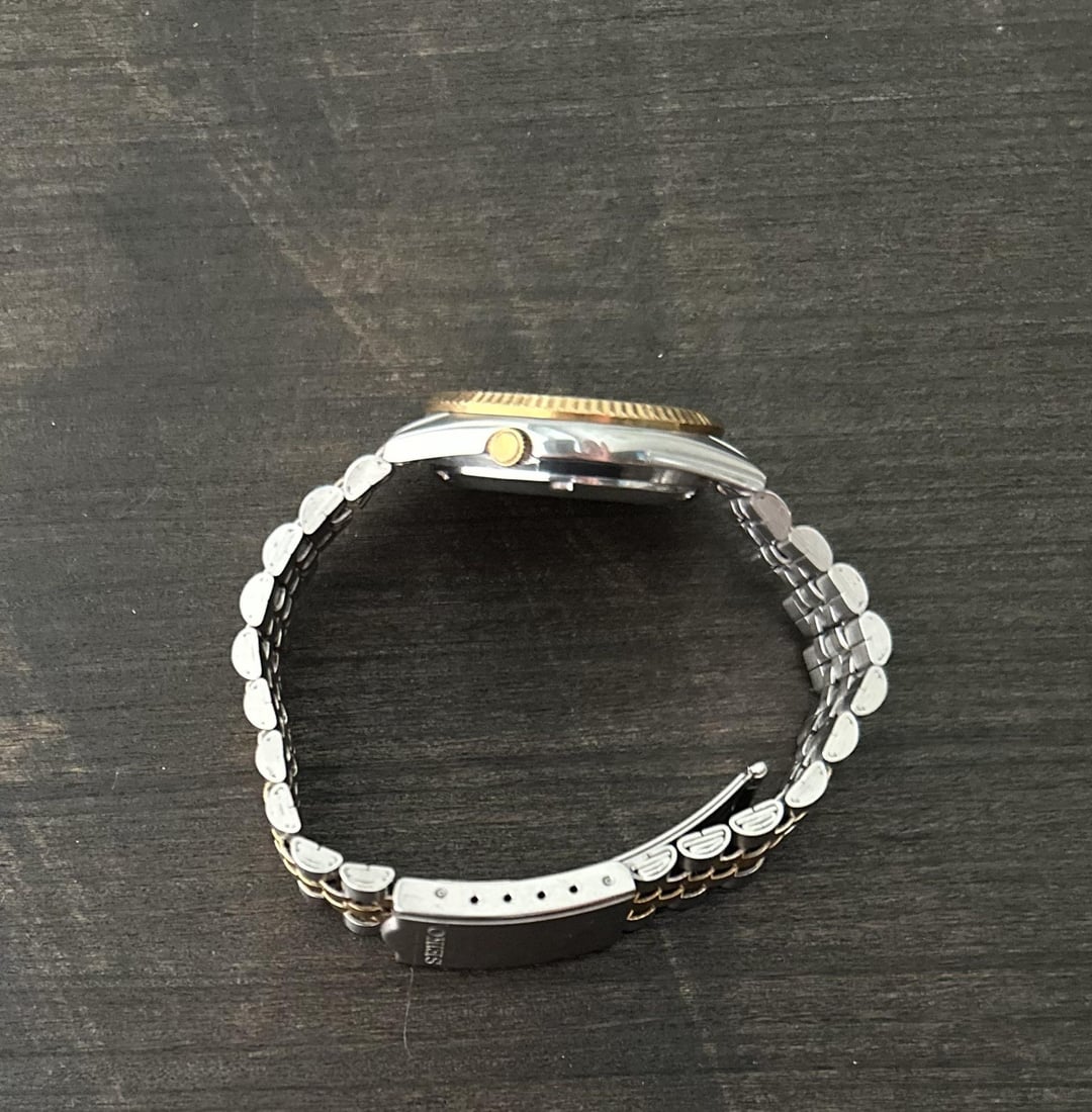 For sale is this beautiful Seiko Presidential Automatic 7S26-3119. Seiko didn’t make many of these Presidentials with an automatic movement. This piece features a 36 mm two-tone stainless steel case, gold tone fluted bezel, and two-tone jubilee bracelet. The 7S26 automatic movement has a day/date function in English and Spanish, and keeps great time at +/-15ish seconds a day. The dial and hands are also lumed, which is in great condition. The case, crown, dial, and hands are in excellent condition. The crystal has a couple of small scratches as shown in the photos. The stainless steel bracelet and clasp are in great condition with a few typical wear marks. Bracelet is sized for an 8 inch wrist, no extra links. Clasp has four micro adjustments. Asking $150 which includes CONUS shipping. Prefer Zelle, CashApp, or Venmo. Thanks for looking!