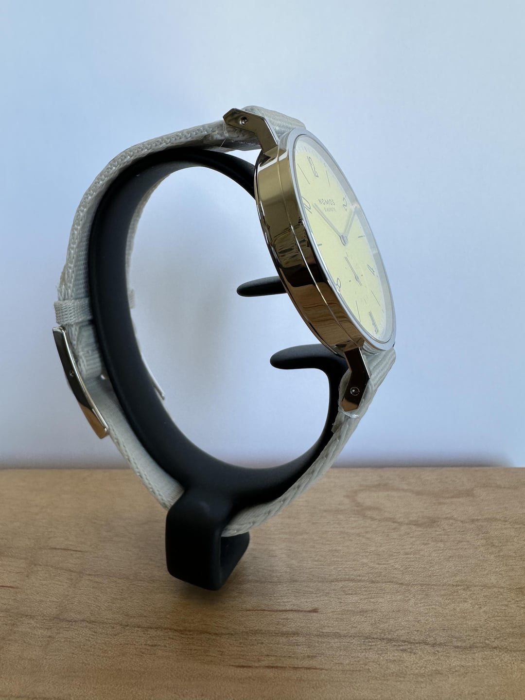 Hi everyone – I’ve picked up some new watches lately so now it’s time to restore the balance in The Force by offering a couple for sale. Up next is this Nomos Tangente 38 in Kanari Yellow. This is one of an LE of 175 pieces in this color, part of a special series Nomos released at the Watches & Wonders show in 2024. Watch runs well, keeps great time, and is in excellent cosmetic condition. I only wore it a few times so it looks nearly new. Full set including the wooden presentation box, outer sleeve, and warranty card. Specs (from Nomos website): MOVEMENT Nomos DUW410 (in-house, manual wind movement) CASE Stainless steel Sapphire crystal glass back GLASS Sapphire crystal glass DIMENSIONS diameter 37.5 mm height 6.8 mm lug-to-lug 47.7 mm WATER RESISTANCE 3 atm (splash-proof) HANDS rhodium-plated STRAP Textile strap light gray, woven, waterproof lug width 19 mm LOGISTICS: Price for this one is $2195 via Venmo or PayPal F&F. (G&S may be OK for members with a number of positive feedbacks; buyer picks up payment-related fees.) I’ll cover shipping with full insurance within CONUS. I have plenty of positive feedbacks here and on WUS (username: Lucky 13) and also almost 400 positives with zero negatives on eBay (username: tlh3). Happy to send a custom timestamp photo or do a Zoom/FT call. Not looking for trades at the moment. **Please leave a comment here on this post before sending a chat or DM.** Thanks for looking and please drop a line with any questions!