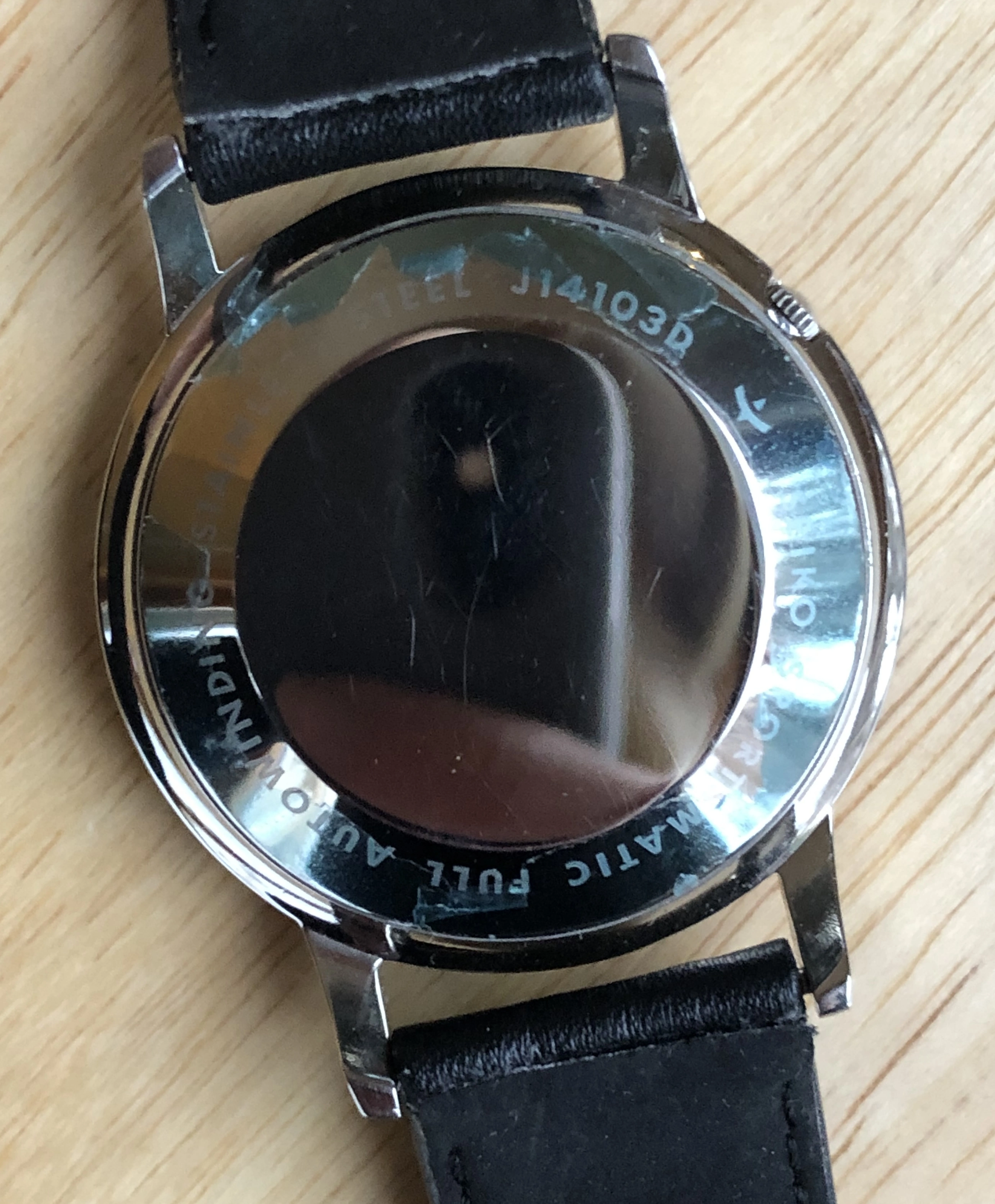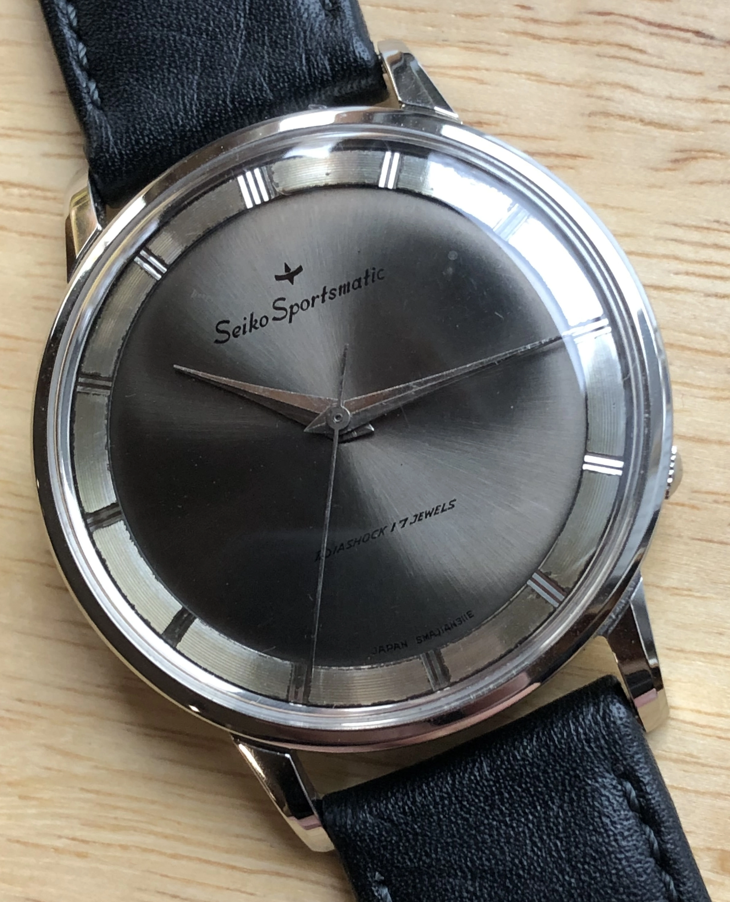 For sale is a 36mm auto-winding Sportsmatic J14103D from the early 1960s. Nice starter piece for a Seiko collector and a perfect wearable size. The watch has an unusual gray sunburst dial with an outer chapter ring. The dial shows minor signs of aging under close inspection, especially on the outer ring, but it presents beautifully overall, IMO. The back has remnants of the original protective plastic and overall the watch gives the impression of being virtually unworn, IMO. The watch has not been serviced in my possession and likely never, but it appears to be operating correctly. I will not be opening the case. 😀