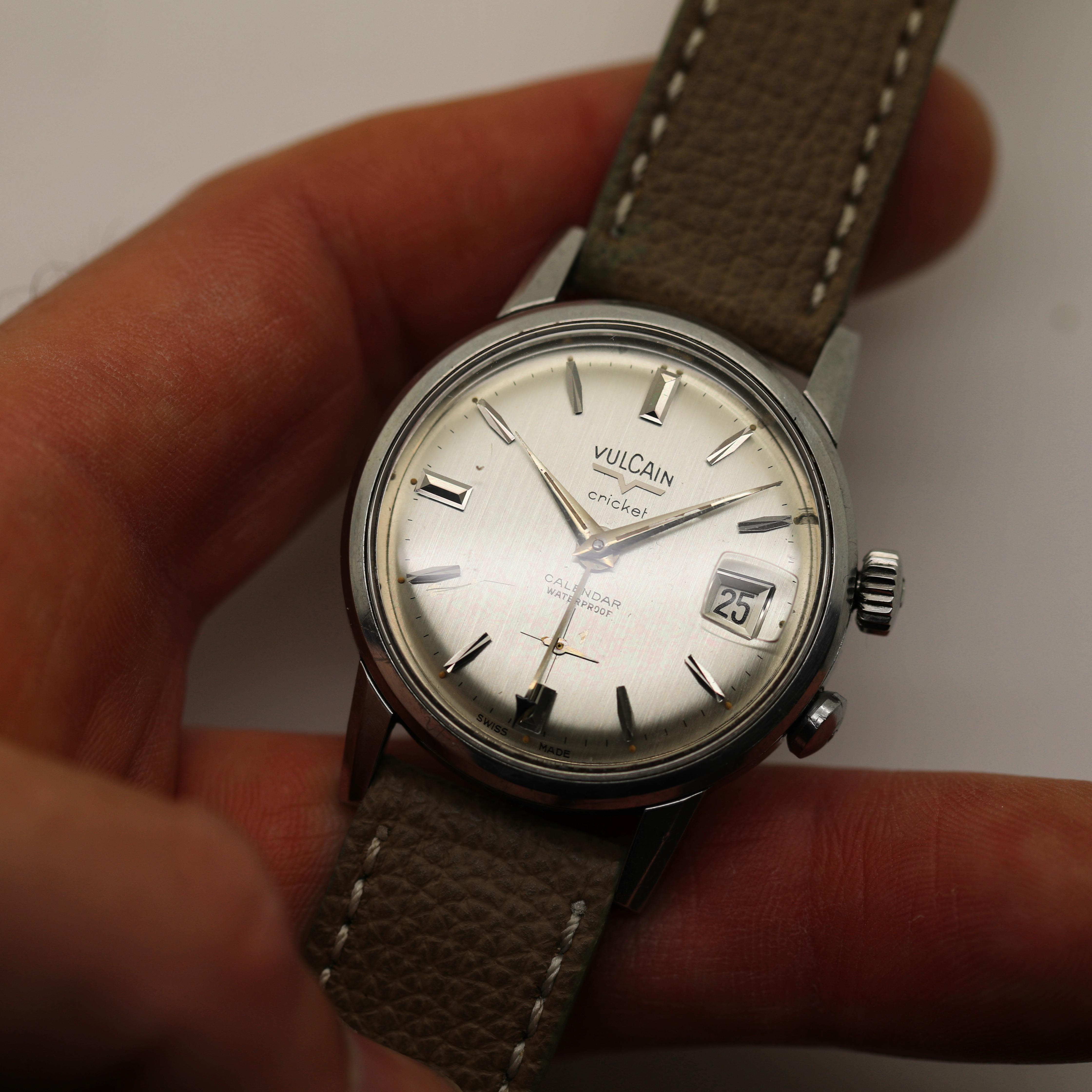 By the 1950s, Vulcain was advertising that the Cricket was "The Watch of Presidents," the "World's Best Watch for Busy People," and that the "Cricket establishes your reputation as a man of supreme punctuality and of infallible memory." Crickets have been gifted to every President from Truman to Biden (except for George W. Bush). Brand: Vulcain Reference: S1522A Model: Cricket Year: 1950s Case: 34mm Thickness: 11mm Box/papers: No Location: Los Angeles Price: $1,999 or make me an offer :) Web/IG: [keepiece.co](http://keepiece.co/) Pictures: [https://imgur.com/a/qwz51Bd](https://imgur.com/a/qwz51Bd) Timestamp: [https://imgur.com/a/HWYeLvz](https://imgur.com/a/HWYeLvz) CONDITION & SERVICING \- The dial has a scratch near the crosshair and next to the 8 o'clock marker. \- The hands are missing lume. \- Case is in very good condition, overall a really nice example. \- Alarm is functioning correctly. \- Service history is unknown.