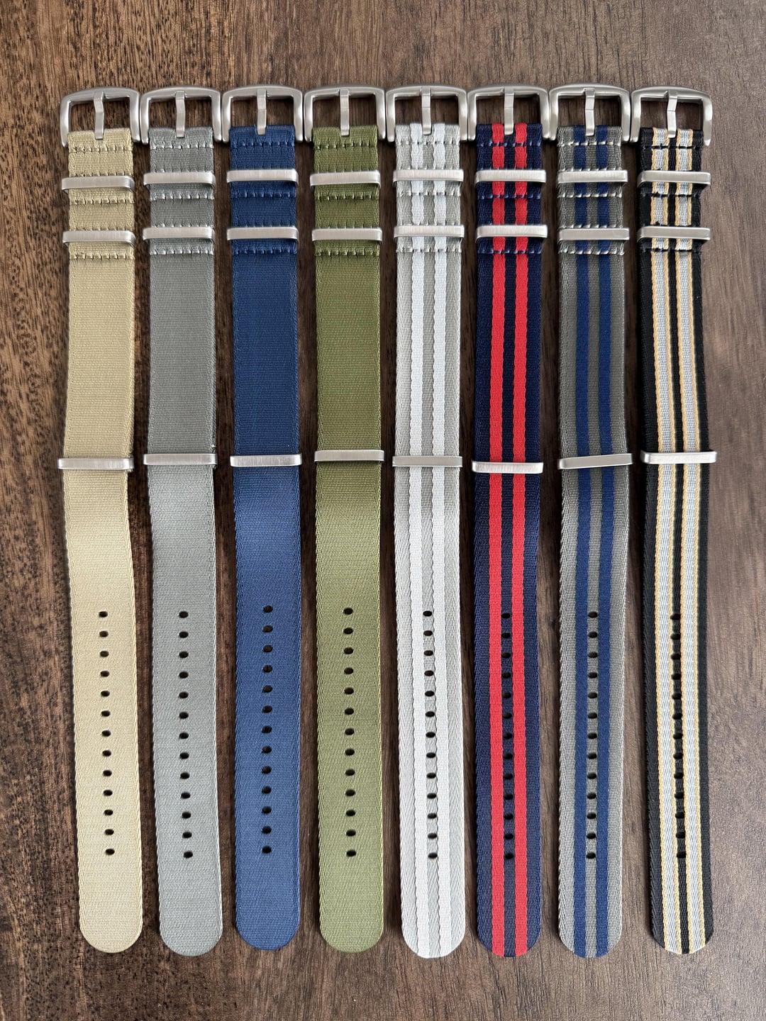 For sale are new 22mm NATO straps. I will waive the shipping fee if you buy $35 worth of stuff. For users with shipping address in New Jersey, I will have to add sales tax of 6.625%. Left to right: Specs: high quality soft nylon, 1 mm thick, length of 290 mm, stainless steel hardware. Price for each is $6. For orders under $35, add one time shipping fee of $4.50. Thanks! Timestamp: [https://imgur.com/9rJoE3x](https://imgur.com/9rJoE3x)