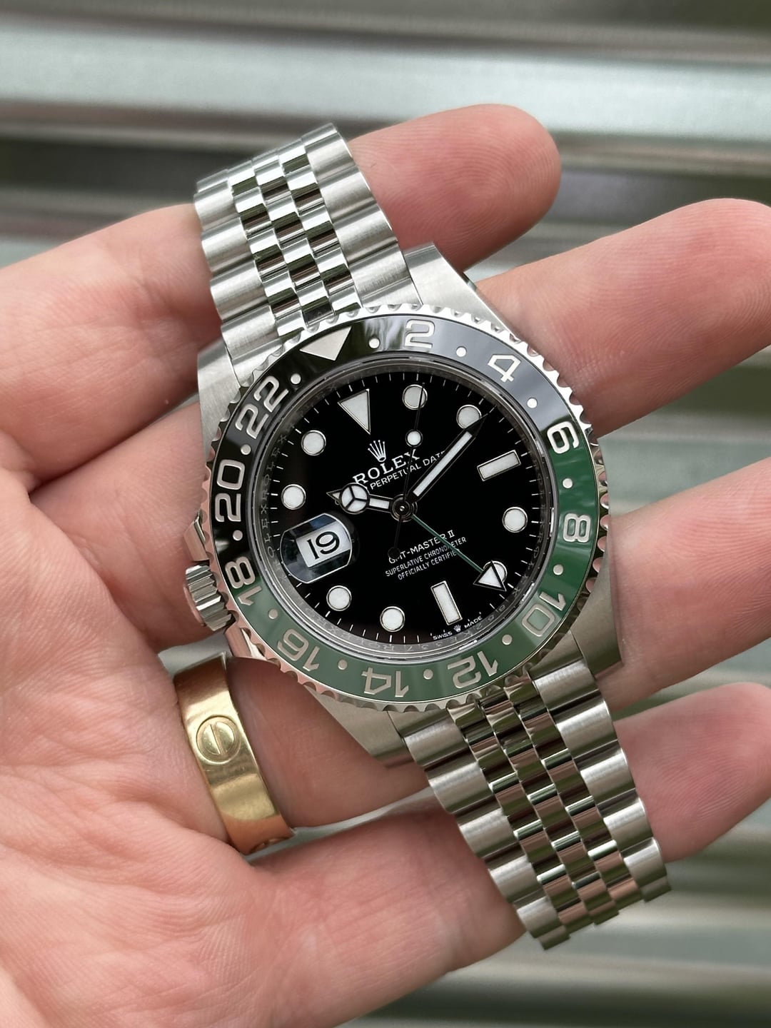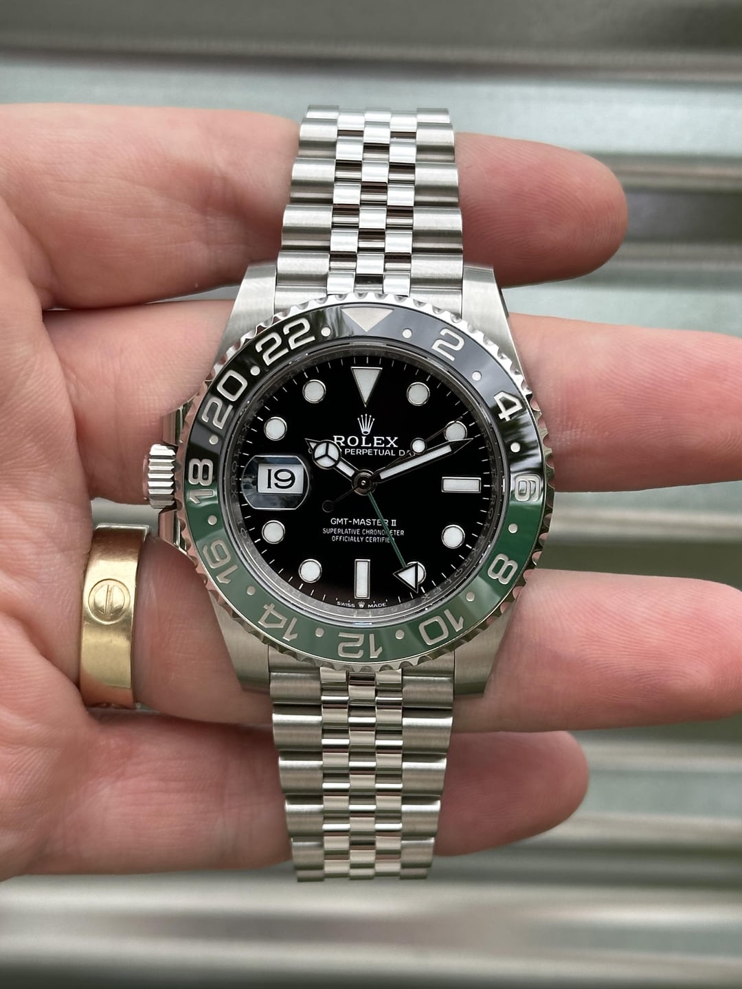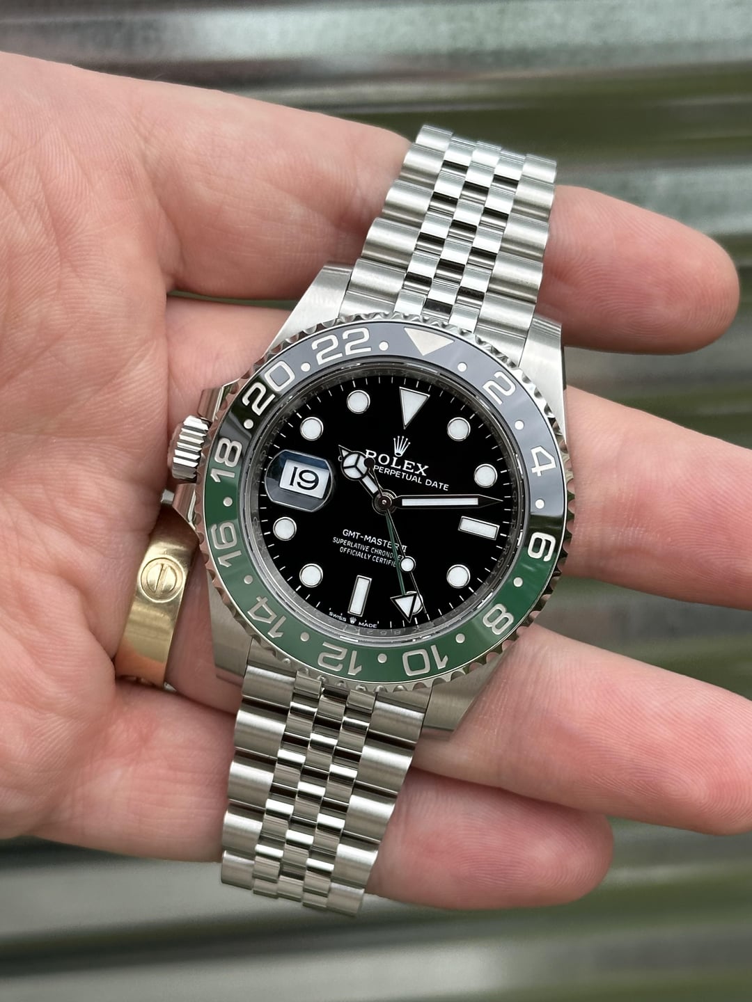Check out this 40mm, Rolex GMT Master II “Sprite” reference 126720VTNR on jubilee, from 06/17/2024. It comes complete with box and card and is in excellent shape. Reference number: 126720VTNR Year: 06/17/2024 💰1️⃣6️⃣,7️⃣5️⃣0️⃣➕✈️ INCLUDES Watch with BOX & CARD, Booklets, hangtag etc. (see second pic for everything that’s included)  The watch is in overall excellent pre-owned condition - see pics for details. The case case is crisp. free of any dings or scratches. Clean bracelet. The stainless steel jubilee bracelet is clean as well. Full link bracelet. The clasp is also clean as well. Still has some stickers on the clasp. The watch is less than a year old. Why wait for the AD when you can enjoy this now? 💰1️⃣6️⃣,7️⃣5️⃣0️⃣➕✈️ We accept Zelle/Wire. Shipped with fully insured shipping once payment clears, no exceptions.  We have plenty of references across different platforms.  Follow me on IG for more deals: @215watches [photo album](https://imgur.com/a/lN6rNXF) [time stamp](https://imgur.com/a/Uf2Ir1Y)