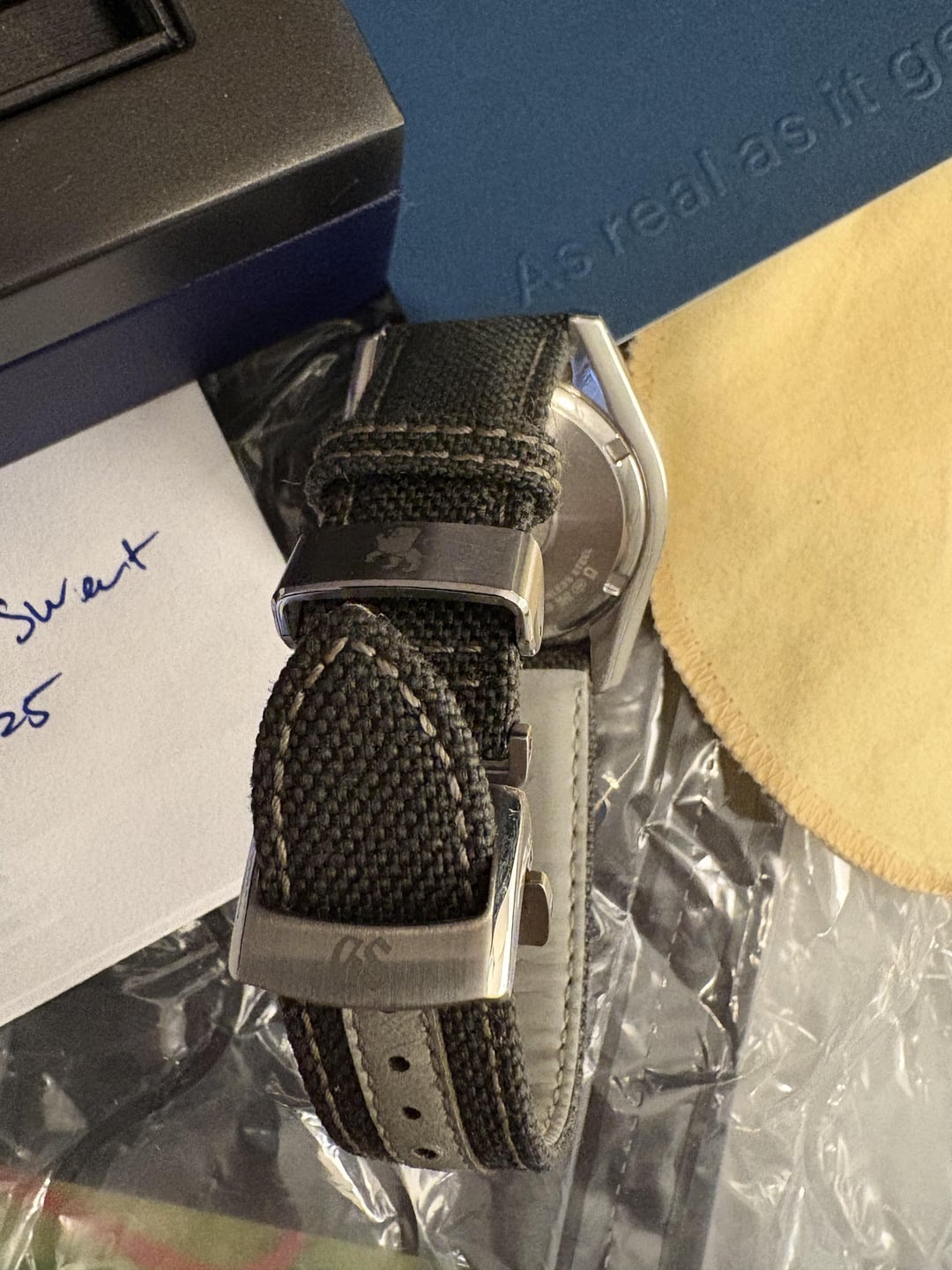 Up for sale is a Grand Seiko SBGV245 Grey Beast I recently picked up and decided is not for me. 40mm, legendary 9F quartz movement, OEM fabric strap with deployant clasp. Full GS box. Comes with eBay authentication card. It currently needs a new battery, as the low power indicator (seconds hand moving 2 seconds per beat) is activated. There are bezel scratches consistent with regular use. Please see photos. Asking $2400 USD with some flexibility. Zelle or PayPal accepted. Strong preference for cash. Limited interest in trades, with a trade value of similar. Looking specifically for Seiko, Omega Speedmaster Reduced/triple date/JDM models, Omega Seamaster Aqua Terra, other Omega models, Oris. Other offers will be considered. Happy to provide additional details or photos if requested. Thanks for looking!