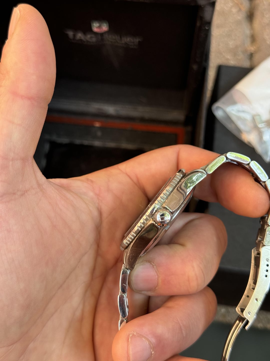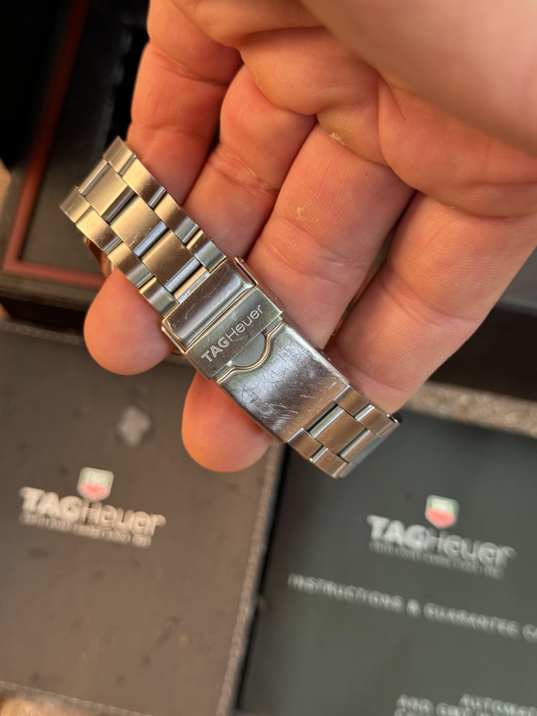 Tag Heuer Aquaracer WAN2111 with blue sunburst dial in good pre owned condition, keeping good time. All functions properly working, smooth crown and bezel action. Has signs of wear on case and bracelet, it has a couple of small nicks on case left side. Crystal has no scratches. Bracelet is sized for a 7inch wrist, and 4 extra links will be included. Comes with box and manual, and warranty from AD (good through 5/26) Asking $995 obo! US shipping only, thanks