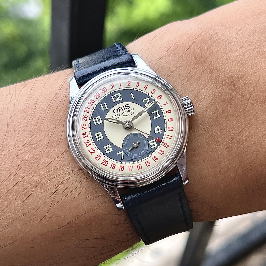 Hello Watchex, Up for sale is a wonderfully preserved example of mid-century Oris design — a vintage manual-wind Pointer Date, with all the charm you’d expect from Oris’s golden era. With its two-tone sector dial, red date numerals, and iconic central date hand, this is the spiritual ancestor of today’s modern Big Crown Pointer Date line — but with loads more vintage character. This model features a beautiful cream and vintage navy dial layout, bold Arabic numerals, and a classic red-tipped pointer hand for the date. It’s compact by today’s standards (~33mm), but wears with vintage elegance and clarity, especially with the bold, legible layout and sub-seconds register. Video and timestamps: https://drive.google.com/drive/folders/1ElLGEOO5VMTd5pykRK5xUvCMkS3VojK3 For reference, my wrist is 17cm (6.69inch) and the watch sits very nicely on it. Movement: Manual-wind Oris cal. 373 (SERVICED) Size: 33mm This is a collector-favorite layout and era, and finding them in clean, running condition is getting harder every year. A perfect daily-wear vintage or addition to any pointer-date enthusiast’s lineup. Price: $360 + $30 shipping via UPS (coms around $450 for similar conditions) Shipping through UPS Express (ships next day, 3–5 business days) Payment: PayPal F&F or G&S (buyer covers 4.6%)