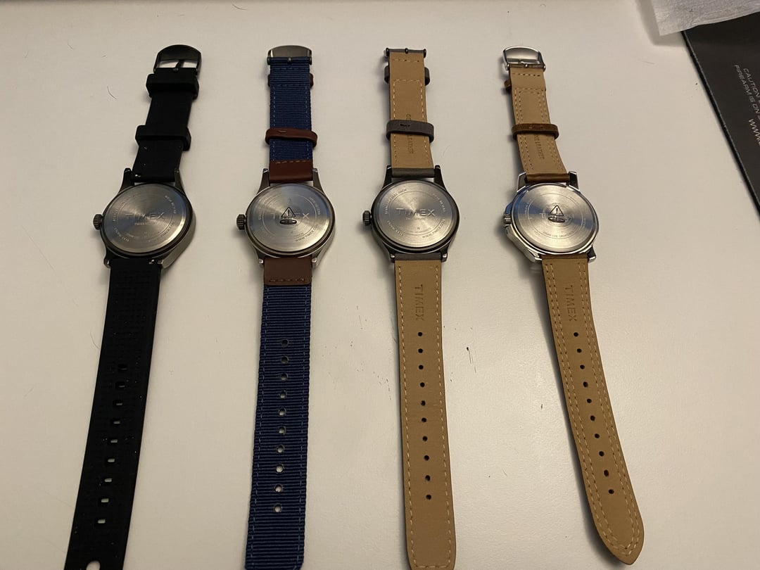 Selling off some watches that aren’t getting any wrist time. All 4 watches are in nice working condition with signs of light wear from normal use. Each comes with its original strap, but no boxes. Below are the reference numbers. - TW4B30200 (Green dial w/ black rubber strap) - TW4B14100 (Blue dial w/ blue canvas strap) - TW4B23100 (Gray dial w/ gray leather strap) - TW4B16000 (Blue dial w/ brown leather strap) Would prefer to sell them as one lot, but I will consider offers individually. Asking $120 shipped and insured (CONUS). Will accept PayPal F&F, Venmo F&F, or Zelle. Thanks!