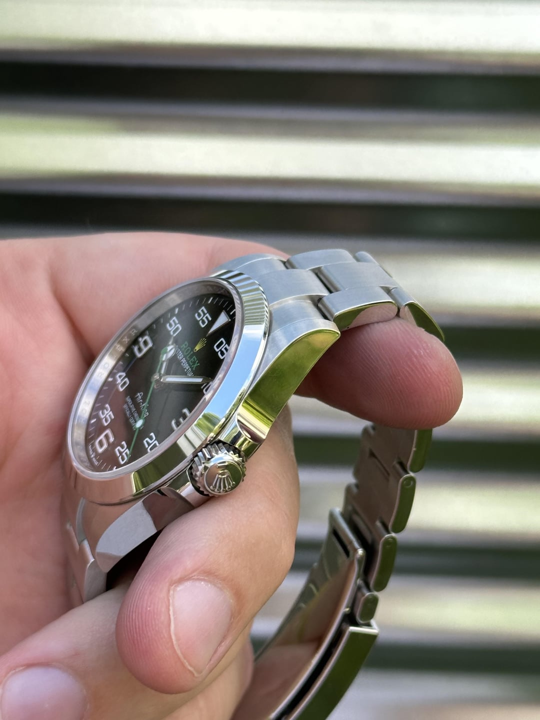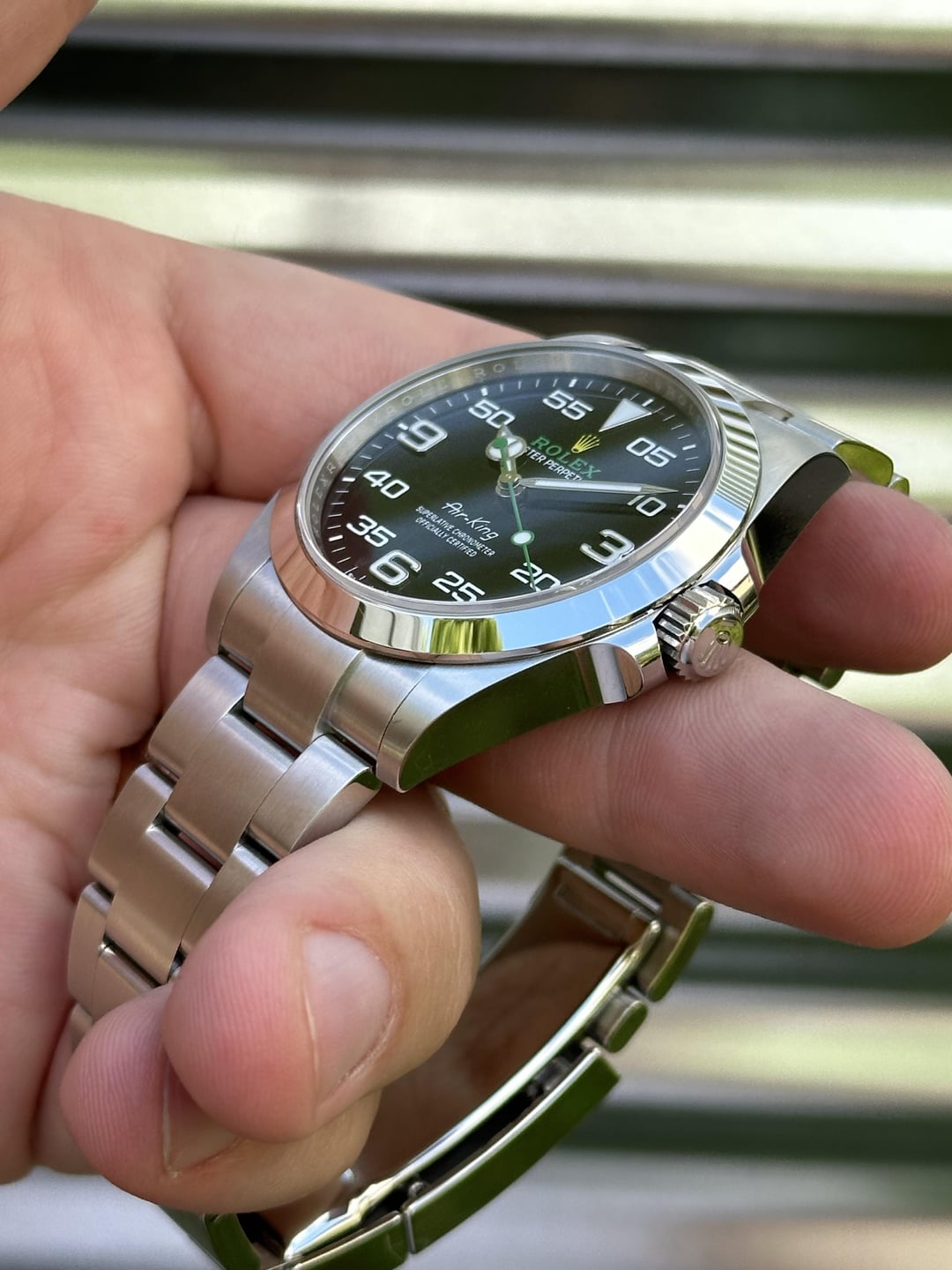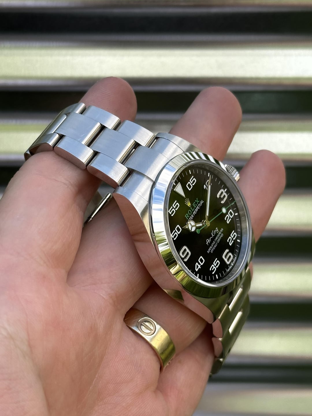 Here we have what I consider one of the most underrated modern Rolex models, the 126900 Air-King. This particular model comes complete with box and papers. Case: 40mm Reference number:126900 Year : 12/27/2023 💰7️⃣8️⃣0️⃣0️⃣➕✈️ The watch is in excellent pre-owned condition - see pics for details. Clean dial and hands. Crystal is clean with no chips or marks. The bezel is super nice. No scratches or chips. The case is really sharp and free of any scratches or dings. Tight bracelet with a clean satin finish. The coronet is nice and thick on the clasp. This is the current version which comes with the crown guards. The dial on these is very unique and the green hand is a nice little accent. Overall excellent value for a modern sport model that has box and papers and is under 8k. 11.5 links on bracelet. Fits about a 7 3/4-8” wrist. 💰7️⃣8️⃣0️⃣0️⃣➕✈️ I accept Zelle/Wire. Shipped with fully insured shipping once payment clears, no exceptions. I have plenty of references across different platforms. Follow me on IG for more deals: @215watches Thank you for your time!! [photo album](https://imgur.com/a/BGyUef2) [time stamp](https://imgur.com/a/OOBUkjB)