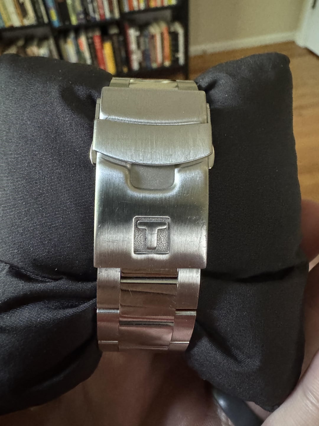 Selling my 43mm Tissot Seastar 1000 Powermatic 80 (T120.407.11.041.03). The watch is in great shape. Minor scuffs on the bracelet but the case, crystal, and bezel are like new. I did my best to show the minor desk wear on the bracelet in my photos. Watch is just too big for my baby wrists and never gets worn. Price includes shipping.