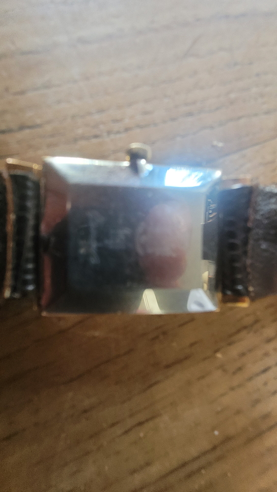 Montée sur un bracelet ancien brun sombre cuir gaufré lézard.