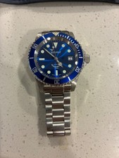 I'm selling my as new Squale 60 Atmos. This watch is less tha 2 months old. There isn't a scrape or scratch anywhere. The watch has great wrist presence. Full polished case and Squale's new and beautiful bracelet. This watch comes complete with dated warranty card, instruction manual, watch case and outer white paper outer box. Case diameter of 44mm, compact lug to lug of 49mm, and lug width of 22mm. Raised screwed in bezel, unidirectional, screw down crown and water resistance of 60 ATM. Selitta SW 200-1 Elabore movement. This is an over-built over engineered timepiece. No trades please. Reasonable offers considered.