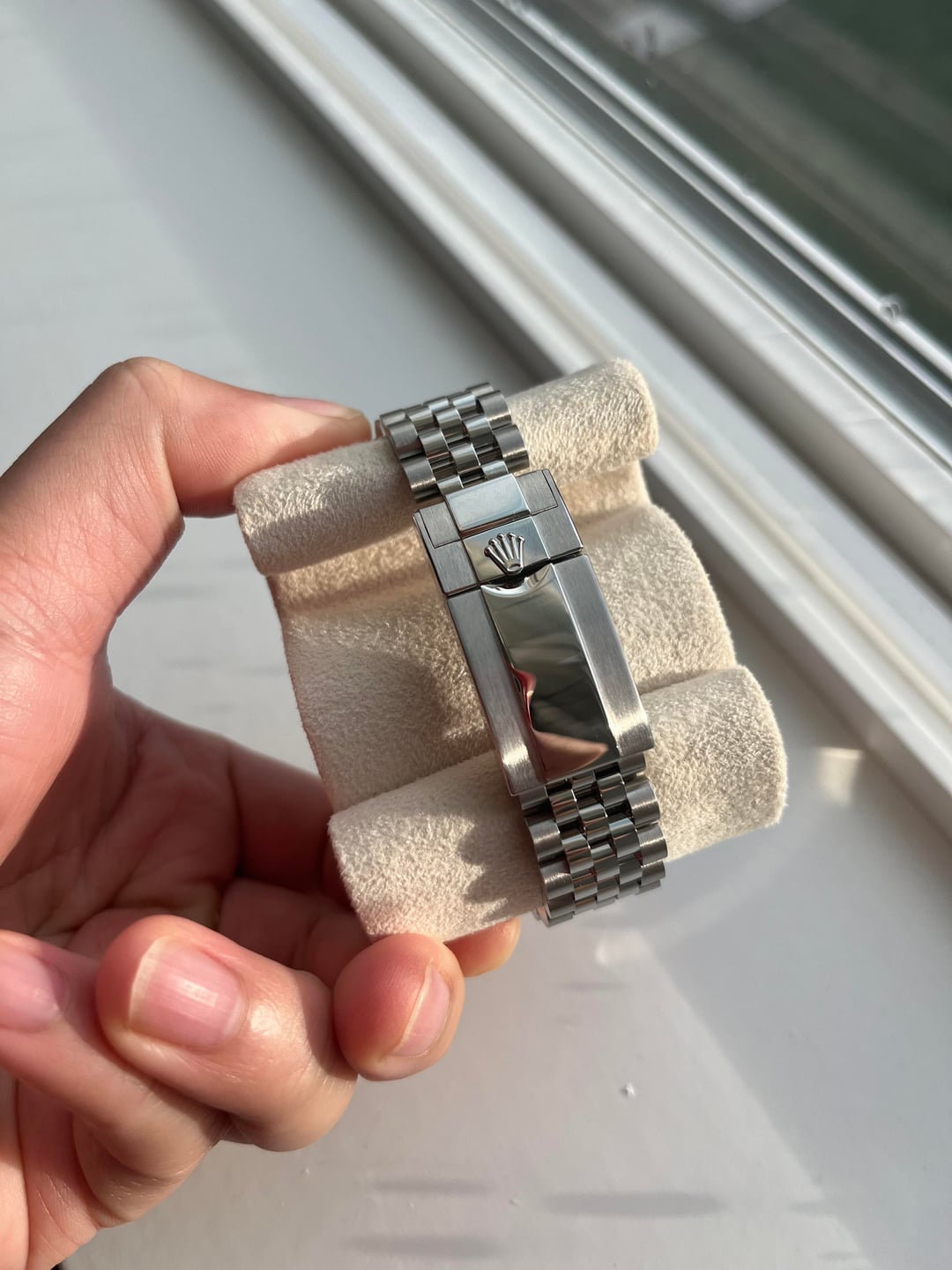 Time stamp: https://imgur.com/a/gIb2Q17 Watch was purchased from the AD on Sept 2023 (will include receipt) and has been only worn 5x. The condition is new and the hinge on the clasp is still stiff. Includes box, papers, extra link and tags. — Price: $16,500 includes shipping CONUS — Payment: PayPal F&F, G&S (+4%), bank wire or crypto Happy to answer any questions, FaceTime, or send more photos.