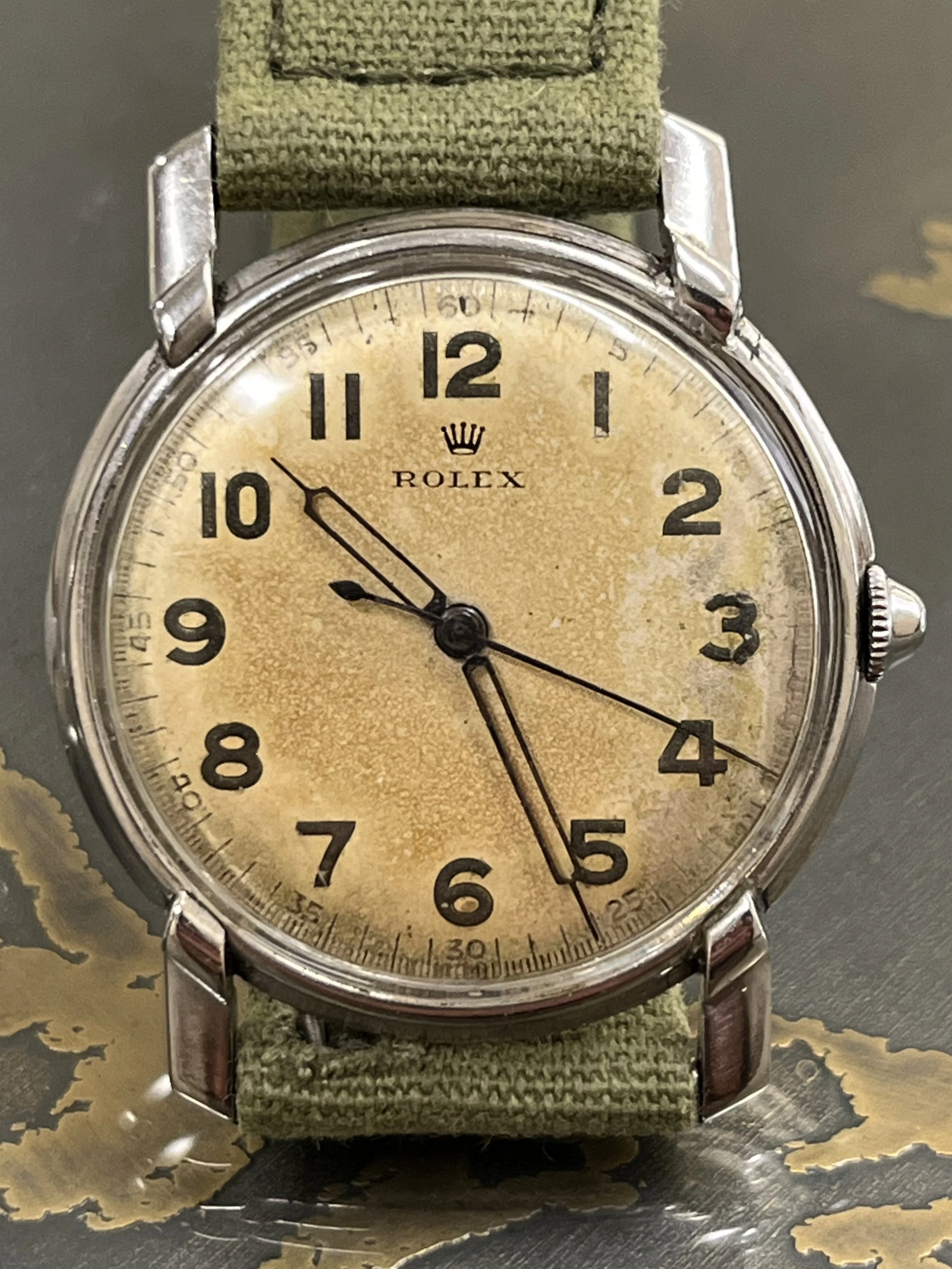 Hello up for sale is a seldom seen Rolex 4315 in non-oyster case. I’ve been told that these non-oyster case serials don’t conform to known serial charts, but this watch looks to me to be from the World War II era.