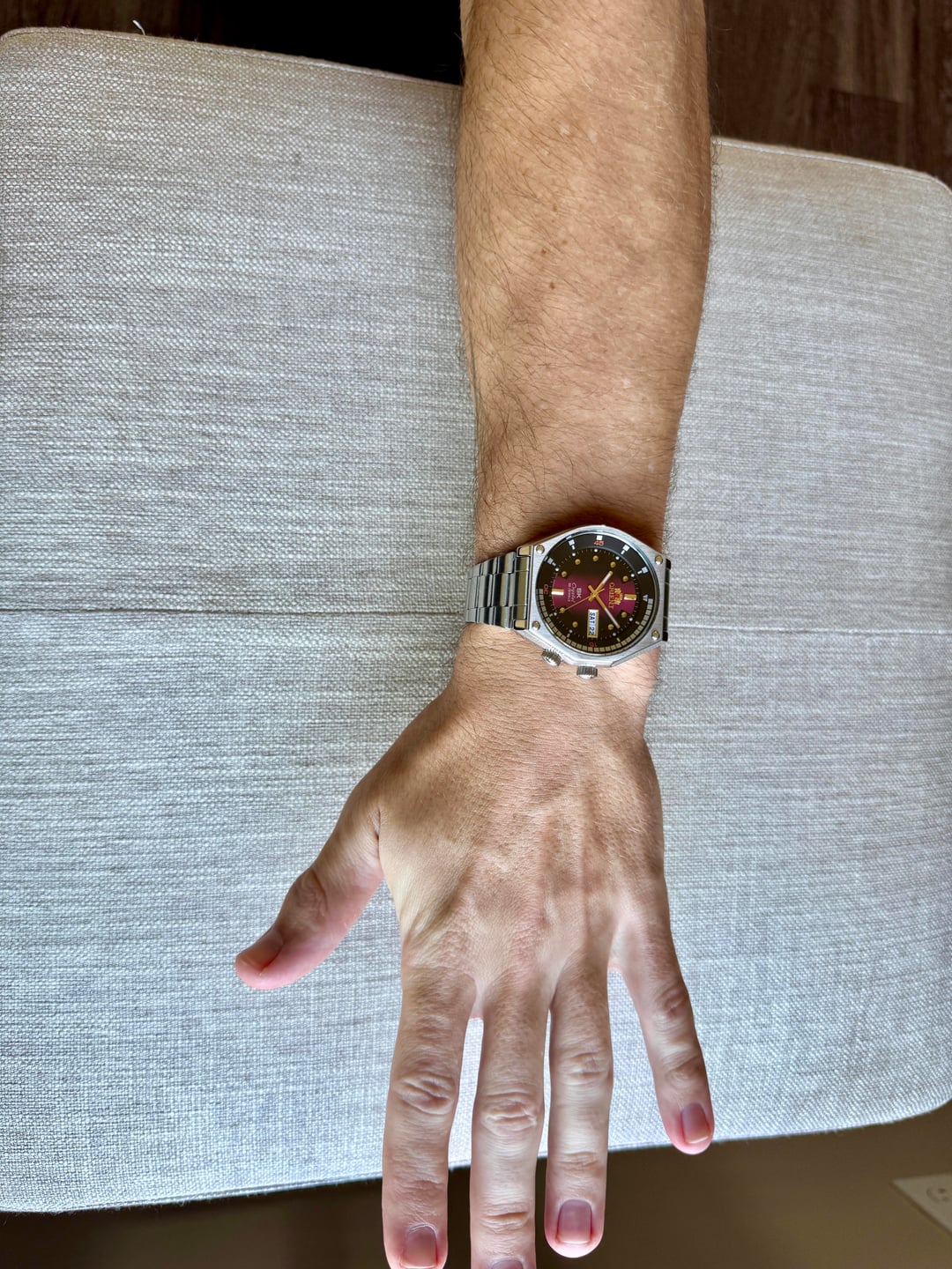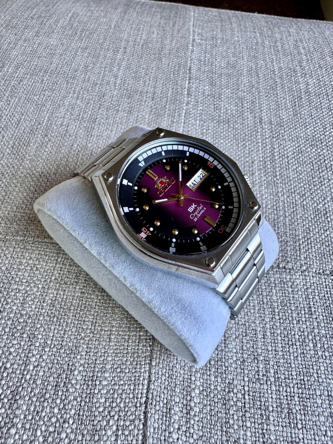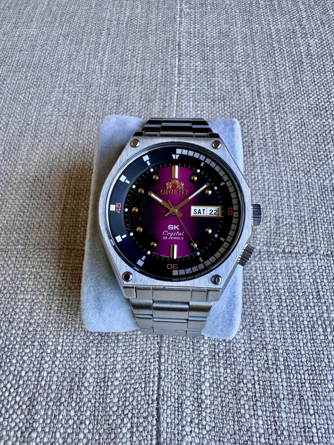 **Description**: This funky Orient Super King Retro Diver Revival RA-AA0B02R19B is in like-new condition; please see the photos to verify. The purple/black gradient dial is stunning and surprisingly sophisticated in person, especially with the gold indices and hands. Honestly, I'm surprised that this piece hasn't received more attention and adoration. [Timestamp.](https://imgur.com/a/timestamp-u-wizard903-r-watchexchange-pfogl3z) **Price**: $155 shipped CONUS. Zelle/Venmo preferred, PayPal FF available for those with purchasing history. No trades at this time. **Miscellaneous**: I've sold many watches, including higher-end pieces, on Reddit with 100% positive feedback. Please feel free to examine the details of my selling history; and feel free to send a chat with any questions. I currently have \~30 other watches for sale; please check my profile for details. All watches have been cleaned with a microfiber cloth and gentle solution.