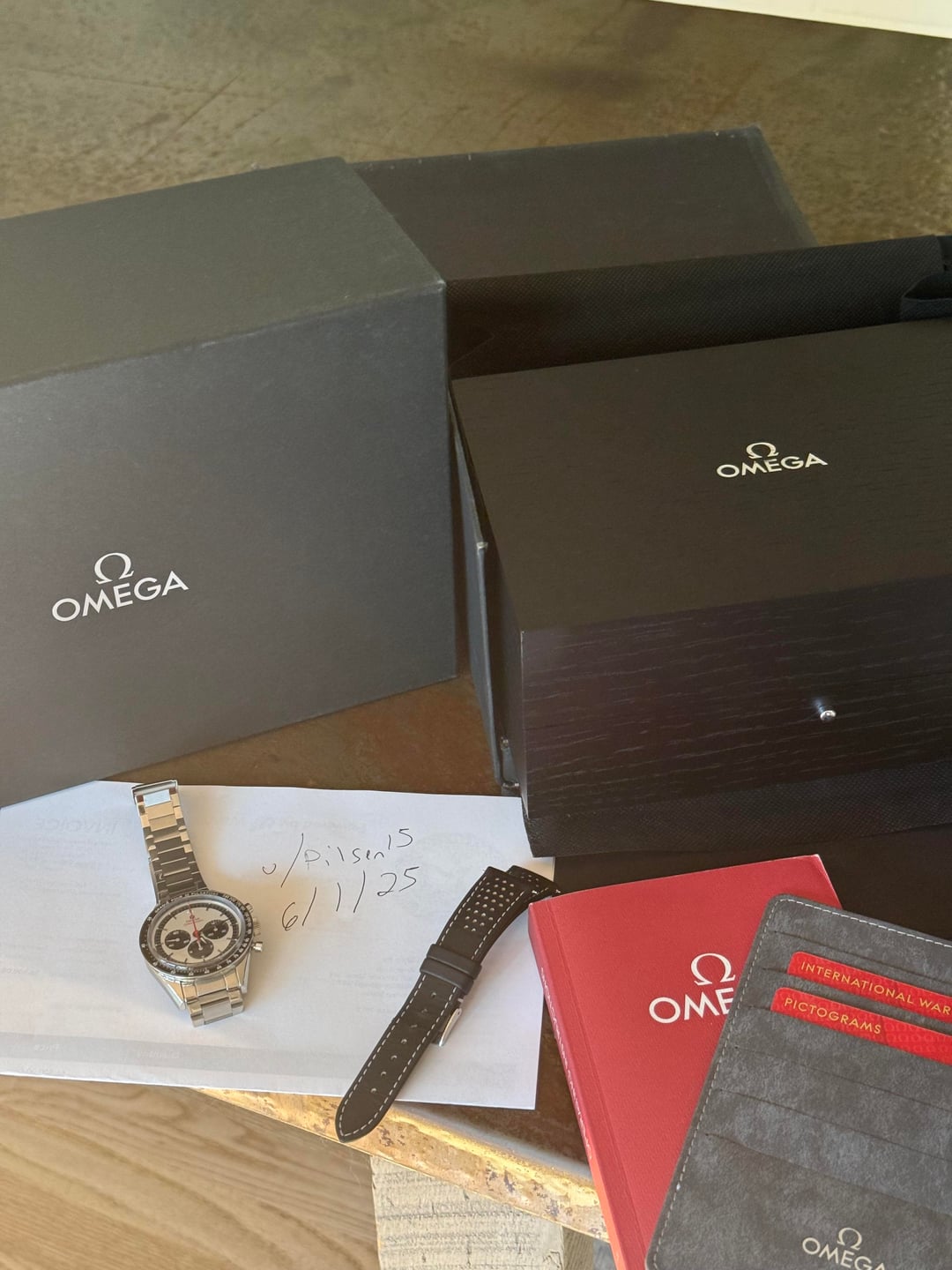 Hey Reddit, up for sale is my Limited Edition Omega Panda Speedmaster Pulsometer CK2998 Ref 311.32.40.30.02.001. This watch comes with the full kit plus an extra uncle seiko bracelet, which is what I wore it with most of the time and looks great IMO. Watch is in great shape other than some minor hairlines and a little indent on a lug, hard to capture in pics. Happy to FaceTime or use another video chat to show the watch online, or provide any other requested angles/pics. Look at my feedback and deal with confidence. Face to face transaction welcome in Portland, Oregon with beer or coffee on me. $6,993 + buyer’s label. No trades please, wire only.