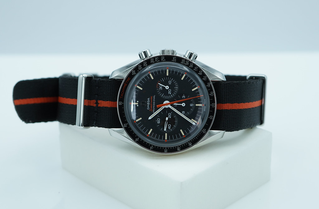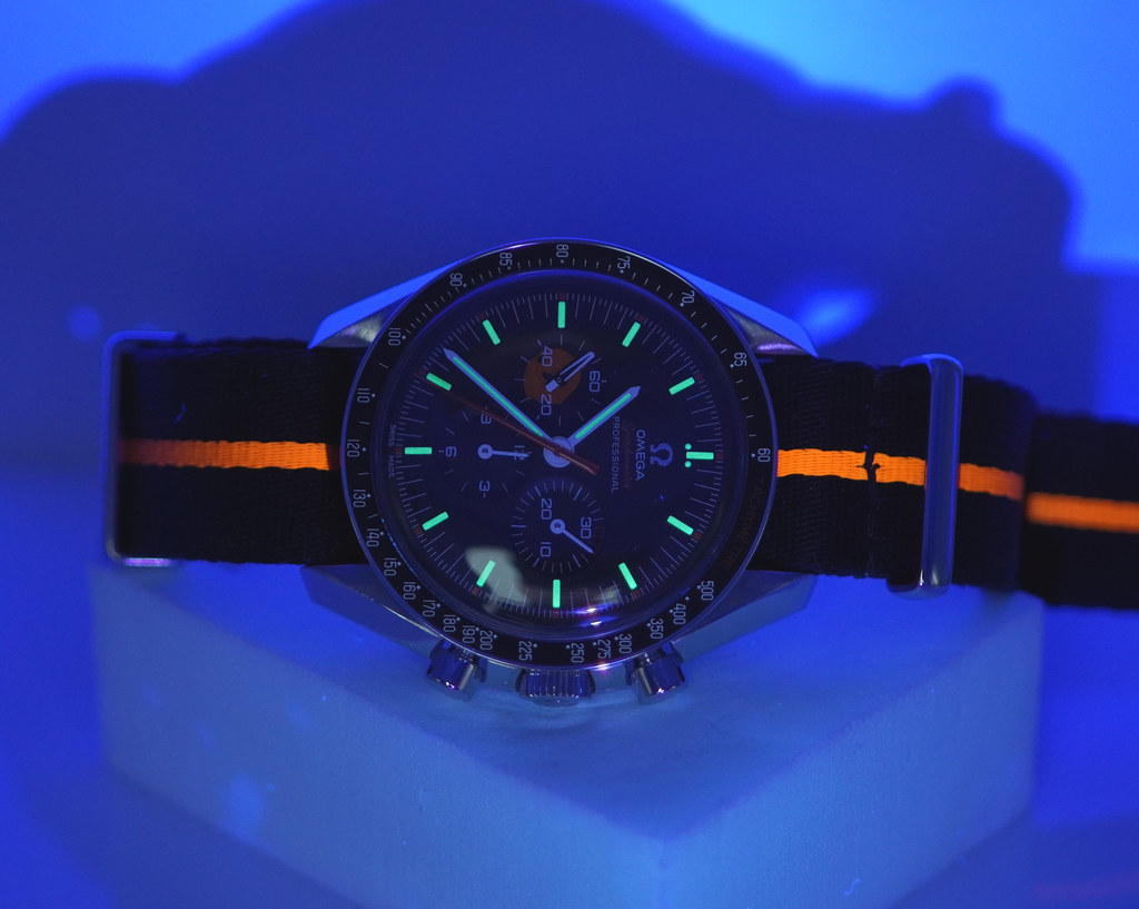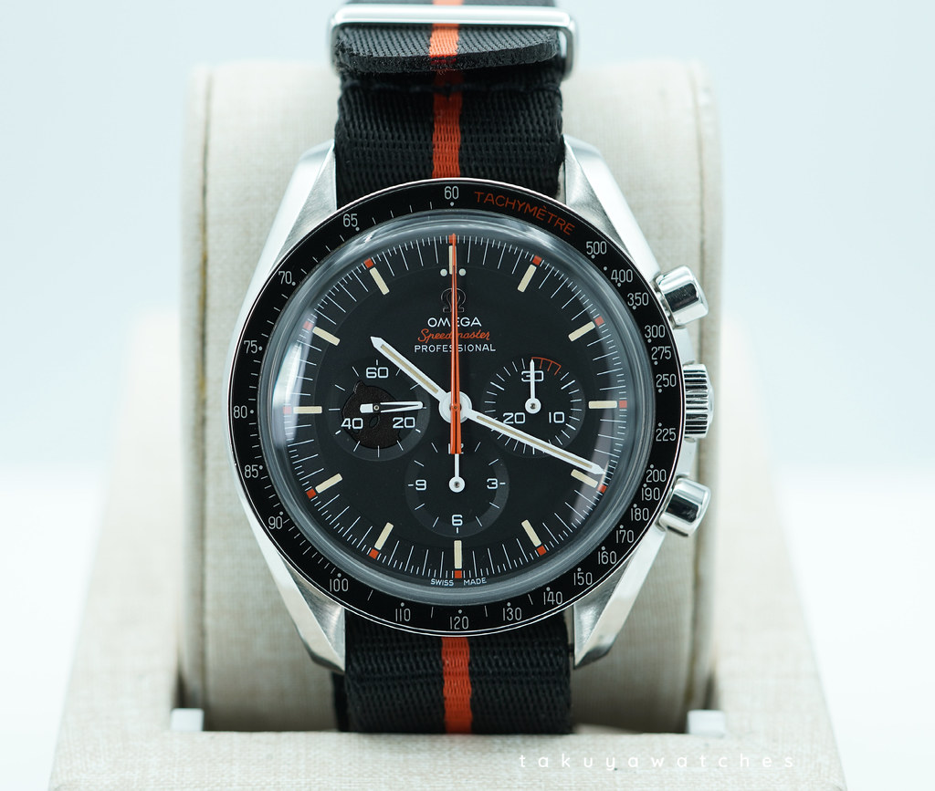 Hi, Selling An Excellent Condition & Very Cool 42mm Limited Edition of 2012 Pieces Omega Moonwatch Speedmaster Speedy Tuesday Ultraman. Stainless Steel Case with Black Aluminum Bezel. It's on Black and Orange Nato Strap. On the 9 o'clock subdial, the face of the Ultraman character is visible in UV light, while the hand of the subdial is shaped like Ultraman's "beta capsule." Purchased from Omega USA Authorized Dealer. Watch Running Perfect with Non Issues. Full Set.