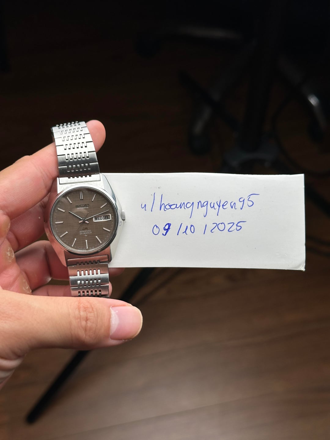 Up for sale is the 1976 Seiko LM Special Brown Linen Dial 5216-8020 in excellent condition. Images: https://imgur.com/a/sxZ76uW Video: https://imgur.com/a/zL5dbJD Timestamp: https://imgur.com/a/ttk3IIT The Seiko LM Special 5216-8020 is one of the most refined automatic dress watches Seiko produced in the 1970s. This particular example features a stunning brown linen dial that shimmers beautifully under the light, giving off subtle golden and chocolate tones depending on the angle. The texture is intricate yet understated, perfectly balanced by applied rectangular indices and sharp dauphine hands that speak to Seiko’s meticulous finishing at the time. The case, measuring approximately 36.5mm, follows the classic “Grammar of Design” language with crisp lines and elegant proportions that wear effortlessly on the wrist. Powering this watch is Seiko’s high-beat Caliber 5216, running at 28,800 vibrations per hour. The “Special” designation on the dial denotes that this movement was factory-regulated for enhanced precision which is a step above the standard Lord Matic line. It features both hand-winding and hacking capabilities, along with a bilingual day-date display, showcasing Seiko’s technical prowess in compact form. The watch is in excellent condition, with almost no scratches nor dents. The crystal is clear and clean, dial is flawless. It comes on the original OEM Seiko Bracelet with extension clasp that can fits up to 20cm (8 inches wrist). The movement has recently been serviced and is keeping excellent time at +/-5s a day. It comes with standard watch box (no papers) Price: $575 + $60 flat shipping (via DHL/UPS express with tariffs/duty fee covered). Payment via PayPal F&F or G&S (+4.6% fee paid by the buyer). Not accepting trades. Feel free to message me with any questions or if you’re interested. Have a great day! Check out my other watches on Instagram: @jasonswatchcorner