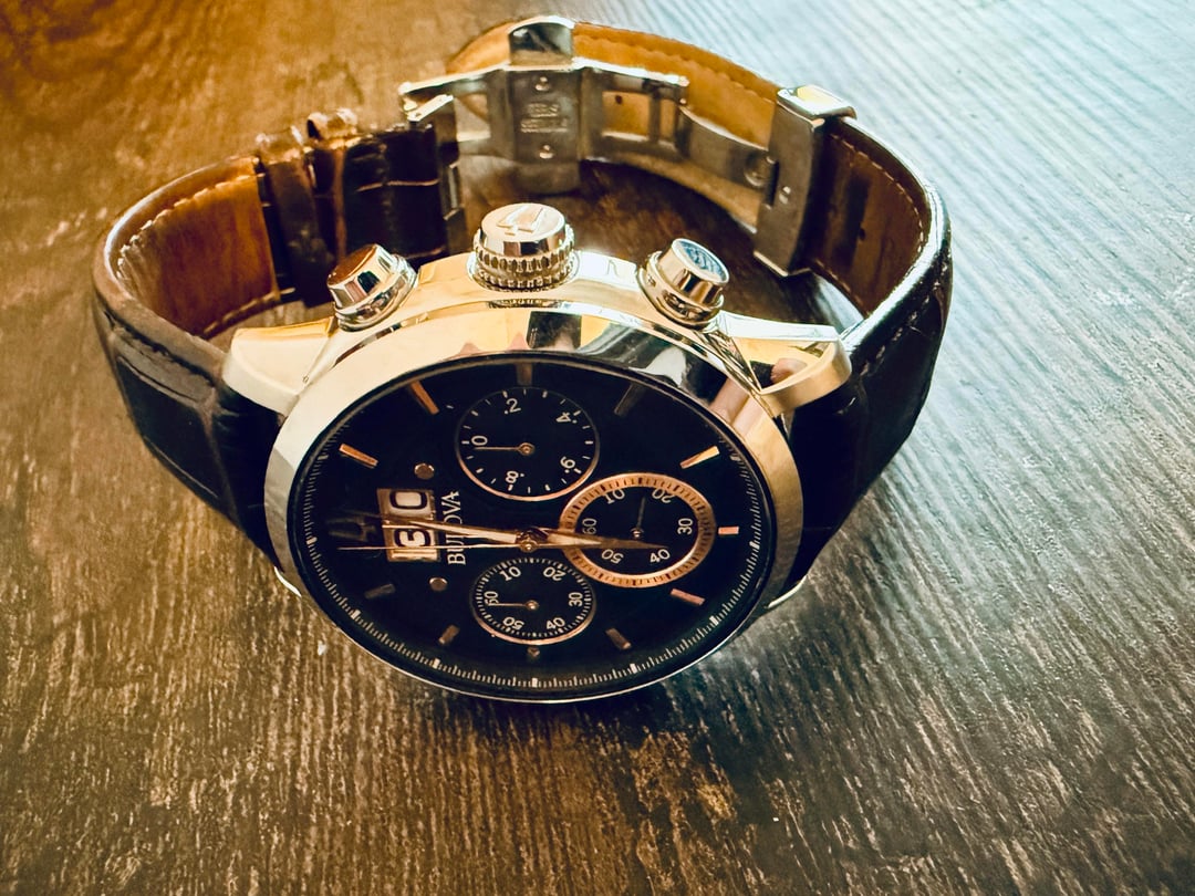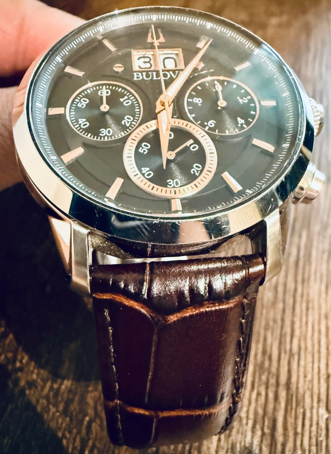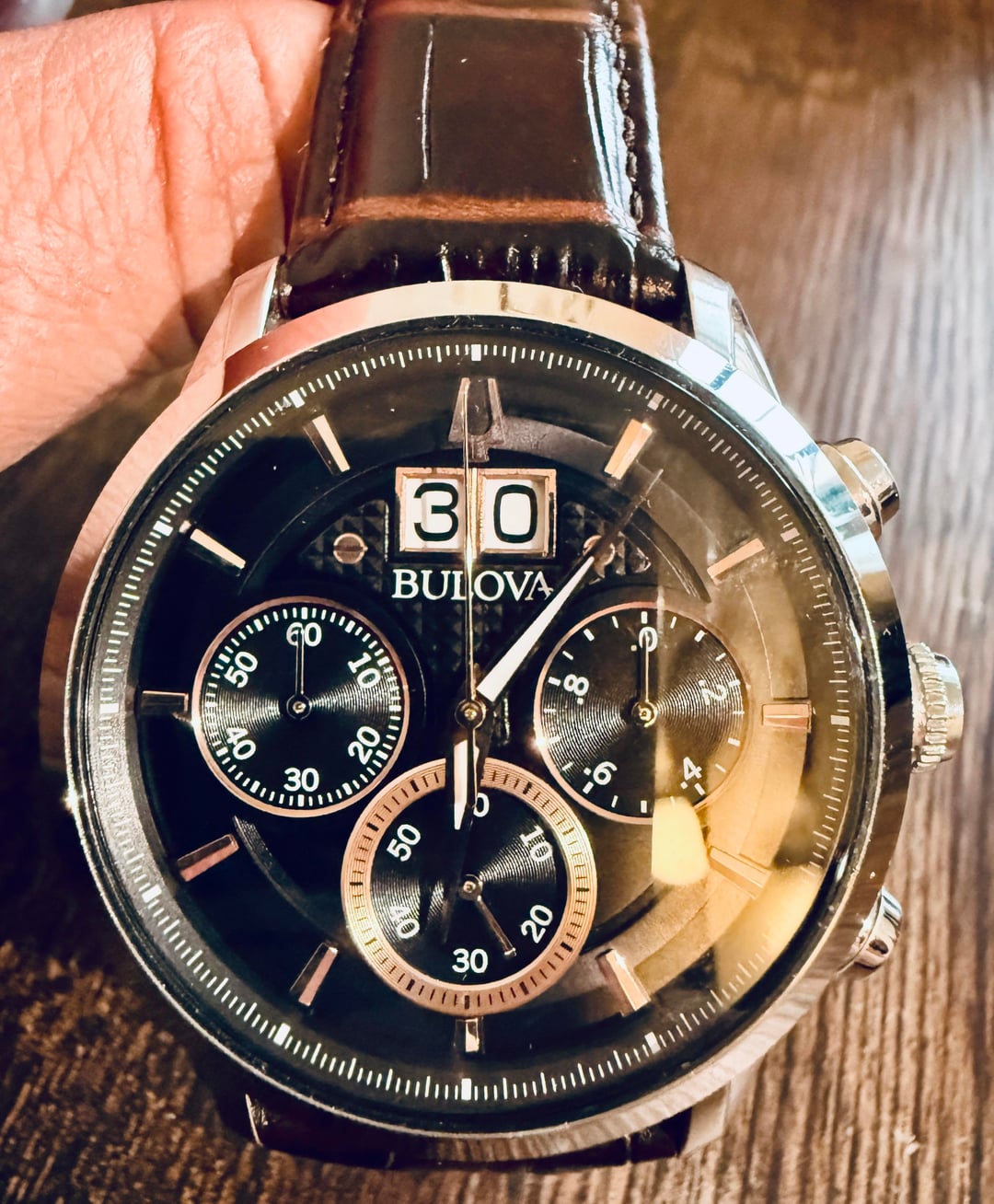 [WTS] Bulova Sutton 44mm Chronograph – $200 OBO (shipped) Up for sale is my Bulova Sutton 44mm Chronograph in great condition. The watch only shows light hairline scratches (not really noticeable in daily wear). No box, just the watch itself. Price: $200 OBO – shipping included (CONUS) Payment: Zelle or PayPal F&F Specs: - Stainless steel case, leather strap, mineral crystal - Case size: 44mm - Deployant clasp closure - Water resistant to 3 ATM - Japanese quartz chronograph movement - Black dial with date window at 3 o’clock - 3 sub-dials