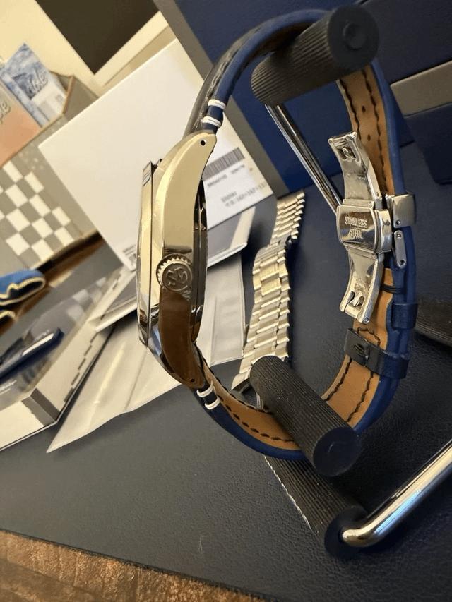 Original owner, purchased new from Moyer‘s. Watch is in excellent working condition. Crystal is clear with no scratches, the case, bezel and bracelet have your typical desk diver scratches that could be erased with a professional polish. Also comes with Buttero Leather Navy Watch Strap. $4,700 shipped insured within conus via PayPal G&S. No trades.