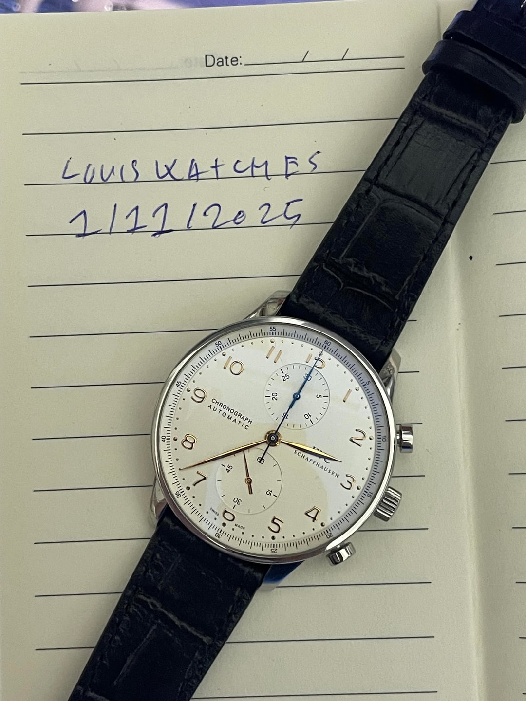 Hi everyone, I’m putting up for sale my IWC Portugieser Chronograph Automatic (Ref. IW317445). Details: • Condition: Good • Case size: 41mm • Movement: IWC Calibre 79350 (Automatic Chronograph) • Dial: White with gold numerals & blue hands • Crystal: Sapphire (front & back) • Price: $3.300USD (shipped CONUS, PayPal G&S accepted) • Location: Am in Ho Chi Minh City VietNam
