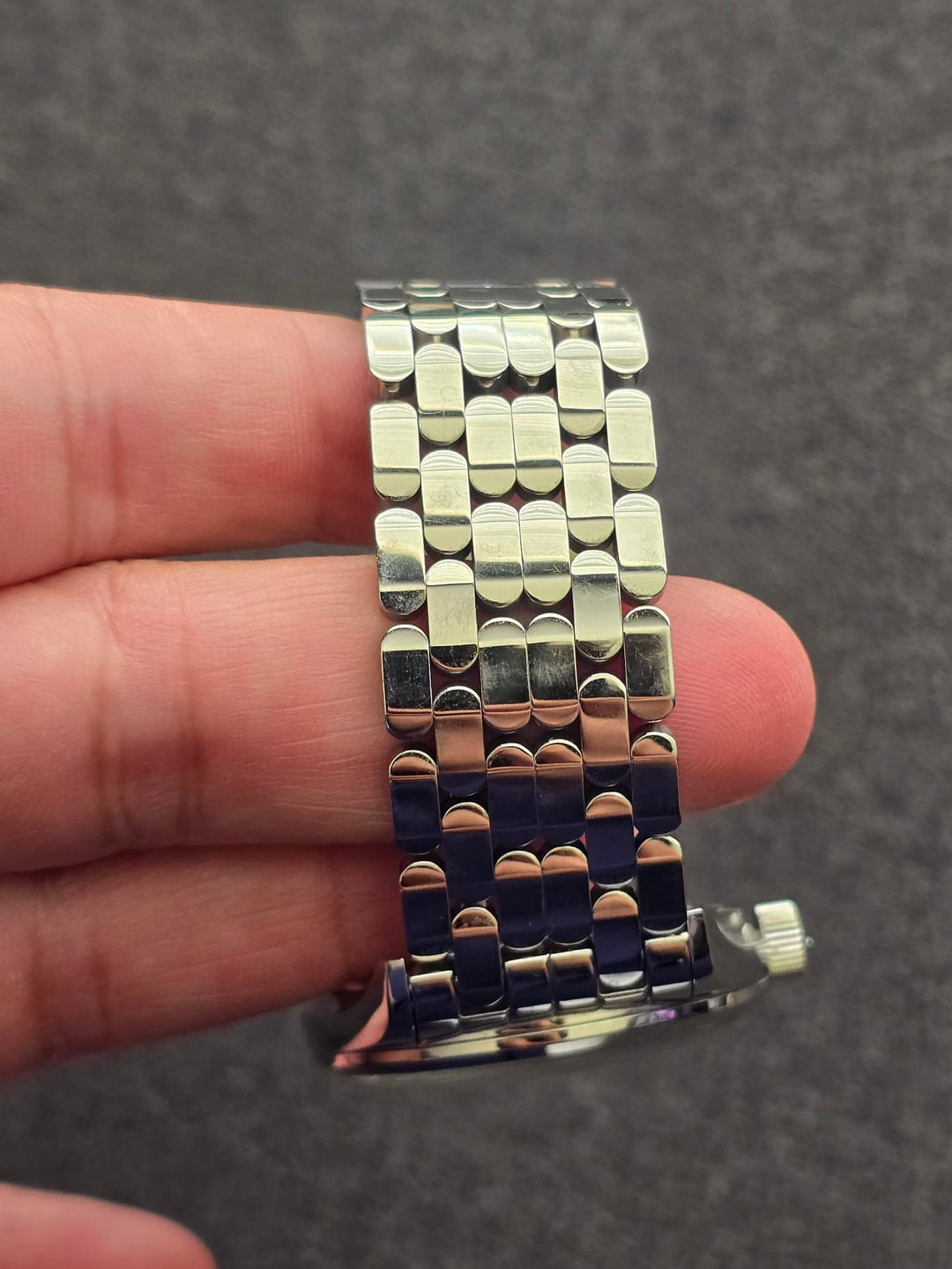 Case - 37.5mm x 45mm x 7.8mm Case Material - Stainless steel Water Resistance - 100m Crystal - Sapphire Dial - White Lug Width - 20mm Strap - Beads of rice Movement - Sellita SW210-1b Paypal F&F or Zelle only