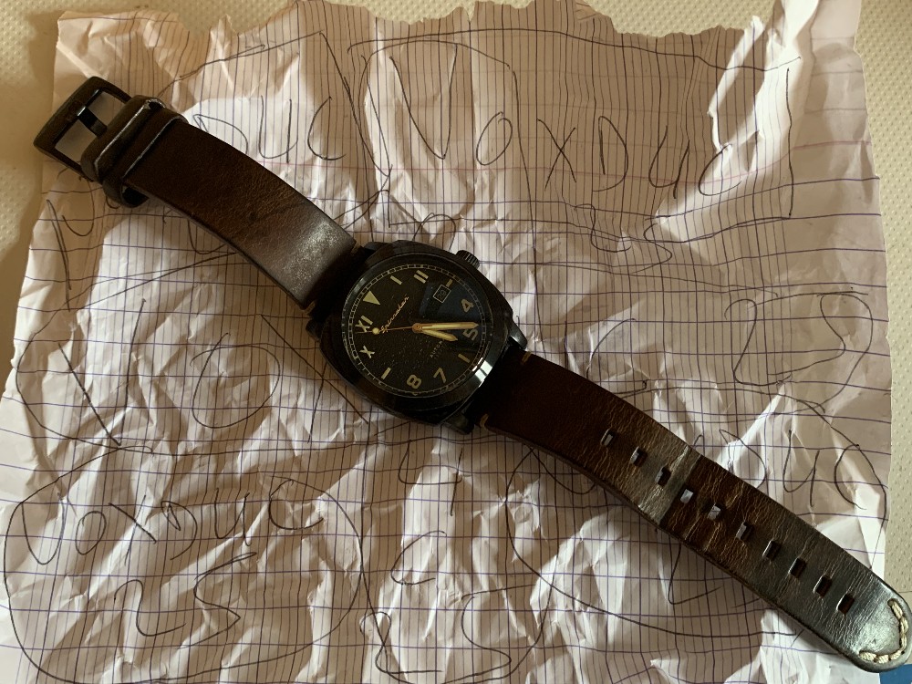 Bracelet cuir épais d'origine, marqué par son utilisation régulière mais parfaitement utilisable