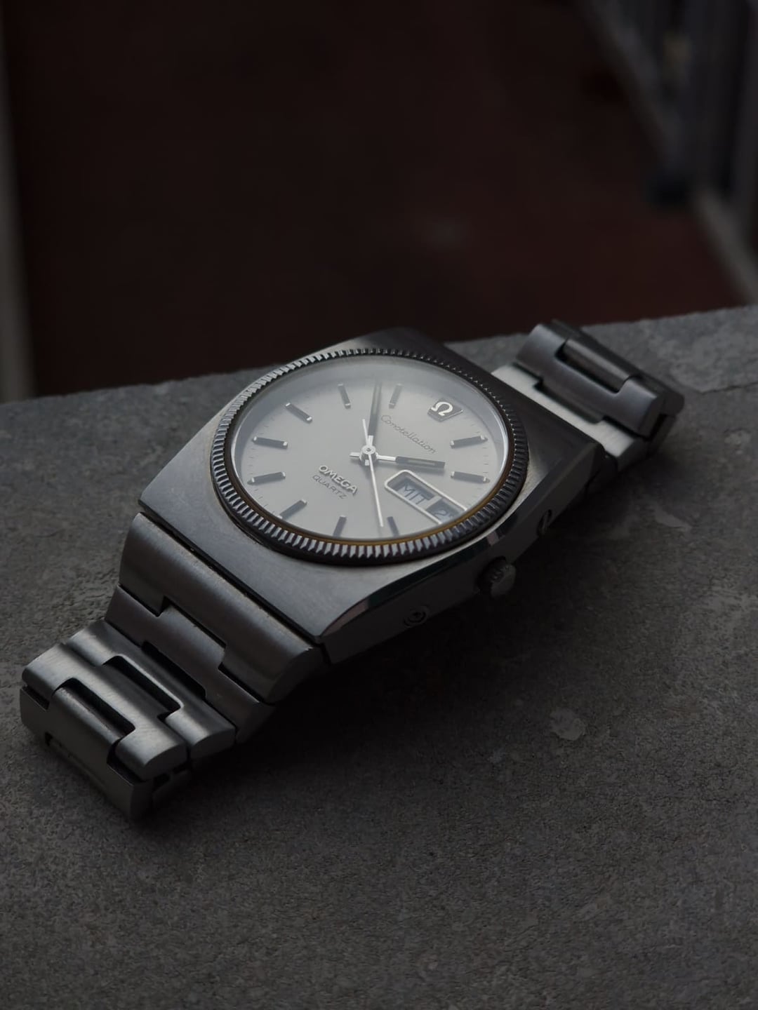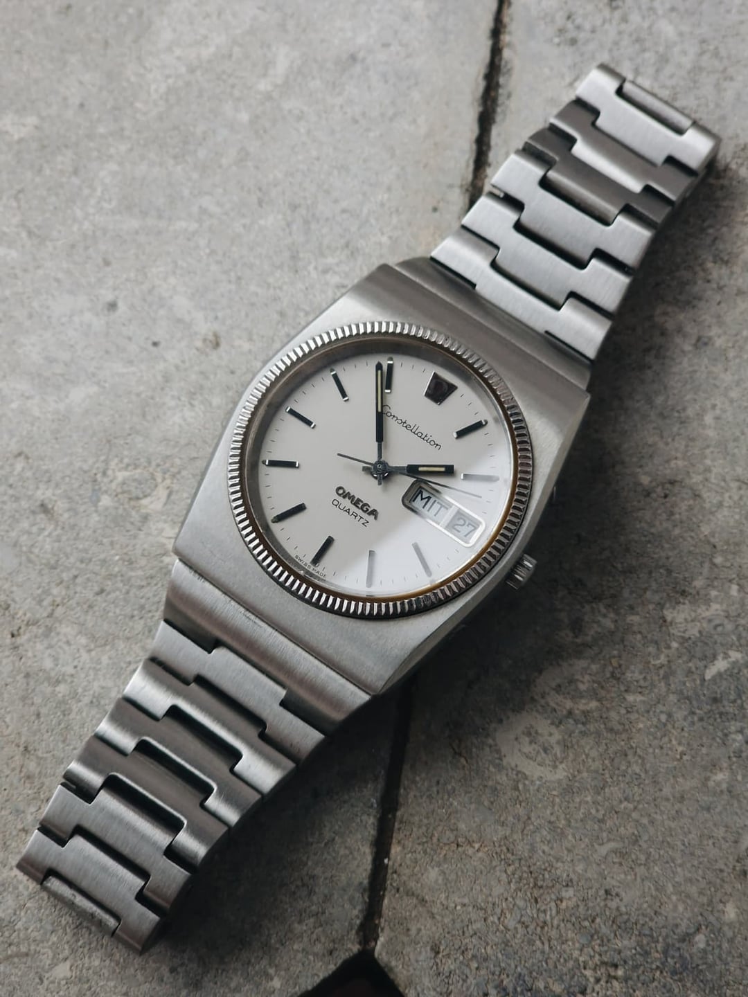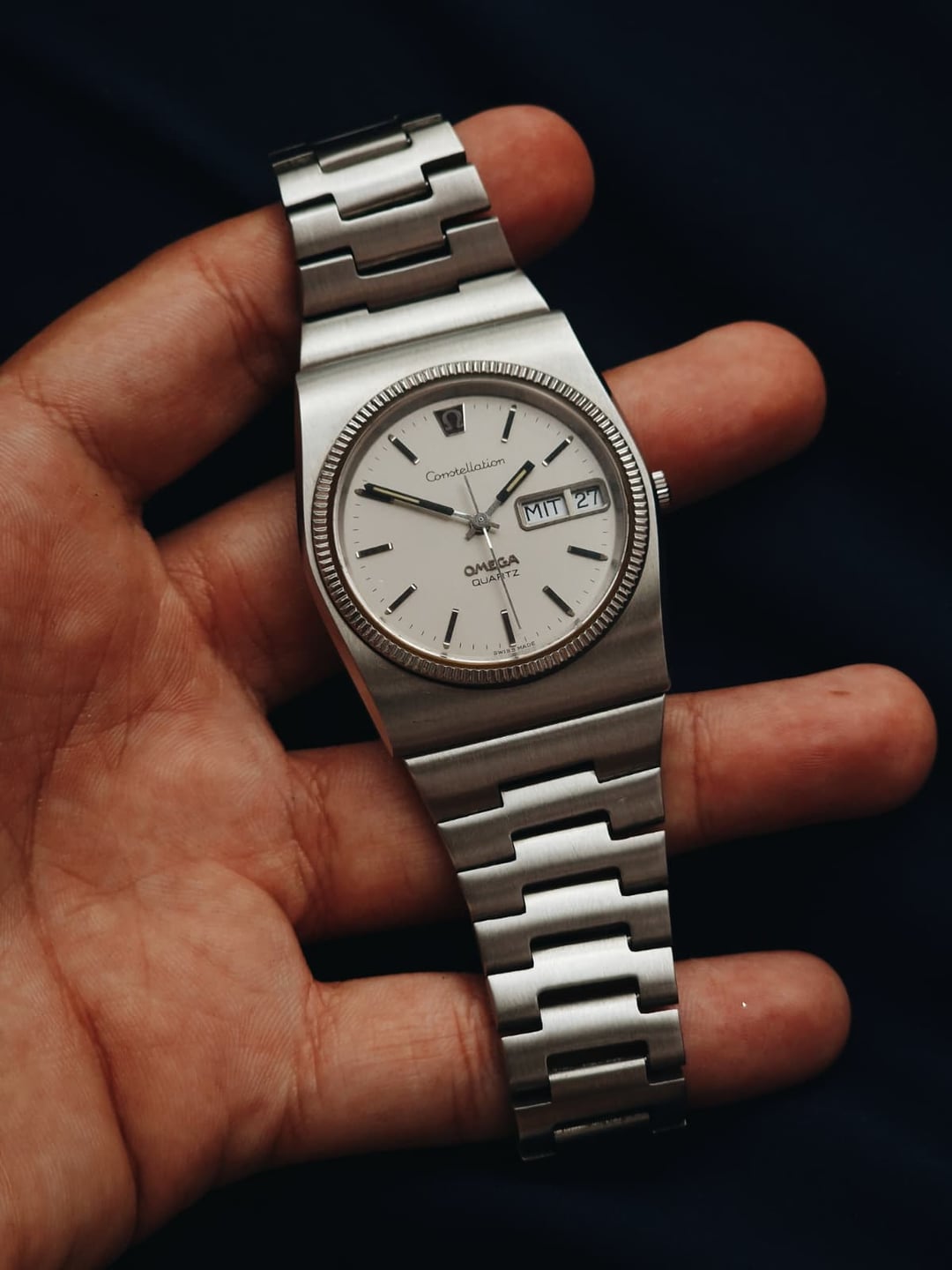 Introduced in 1973, the caliber 1310 was Omega’s first in-house quartz movement, and it came with a few quirks: independent jump-hour setting using the crown, hacking seconds via a pusher at 2 o’clock, and date quickset. The reference 196.0015 features a beefy 37 mm case, an integrated bracelet with solid links, and crisp silver dial with the famous Constellation logo. This is by far one of the best examples I’ve seen, and it’s essentially in NOS condition. This seems to be a rare version, as the dial is marked “Quartz” instead of “Megaquartz 32 KHz” like most watches. I’ve only seen two others with the same markings. While the watch has the original bracelet, part of the clasp seems to be aftermarket. **Condition:** Very good, almost NOS. Very minor markings on the bracelet near the clasp. The movement and its functions work flawlessly, although I don’t know its service history. Please see the pictures for full condition and clarity. **Case Size:** 37mm x 42.3mm stainless steel case with a thickness of 12.3mm and a lug width of 18mm (bracelet width is 27.3mm). **Crystal:** Mineral, no scratches. **Movement:** Omega 1310, quartz with jump-hour setting, hacking seconds, and quickset date. Service history is unknown, but all functions work perfectly. **Other Information:** * Comes with the original stainless steel integrated bracelet. * The bracelet will fit a wrist of up to 6.75 inches (17.15 cm). **Price:** Asking $900. Please add $35 for worldwide shipping. Payment methods include Wise, ACH transfer, Revolut, Bitcoin (On-Chain or Lightning), or PayPal G&S for buyers with solid references. Add +7.5% for currency conversion fees on the latter. Portugal has suspended all shipments to the US, but I can still ship to other countries. Established seller with over 220 transactions – buy with confidence! Make sure to follow me on Instagram (@daily.worn) to check out the newest additions. Happy to answer serious inquiries. No trades, no lowballs. [Pictures](https://imgur.com/a/lXoqfbd) [Timestamp](https://imgur.com/a/oYf8ajs)