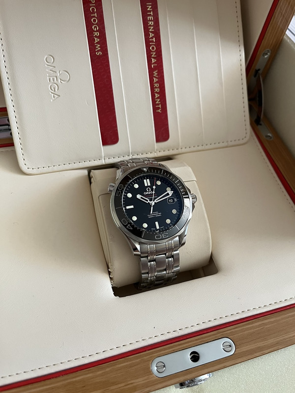 For sale new old stock unworn 41mm Omega Seamaster Diver 300m with black dial, ref. 212.30.41.20.01.003 full set in collectible condition, sold new in Aug 2020