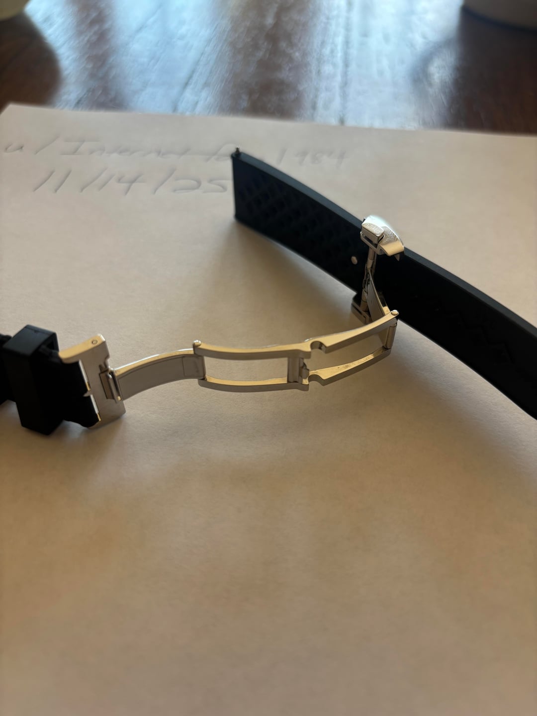 I bought the SeaQ on a bracelet, new from Chisholm Hunter in Scotland last year. I thought I would prefer it on the rubber band which I ordered separately for $713 (most of that cost was in the butterfly clasp). l found that I preferred the bracelet, and I tried to return the band, but it was non-refundable. I wore it with a Hamilton field khaki around the house for a few wears, before deciding I would sell it. It is essentially brand new with no signs of wear or defects. It is not even broken-in yet, so it still needs some real wears to get the rubber feeling more form-fitted. Thanks! Daniel