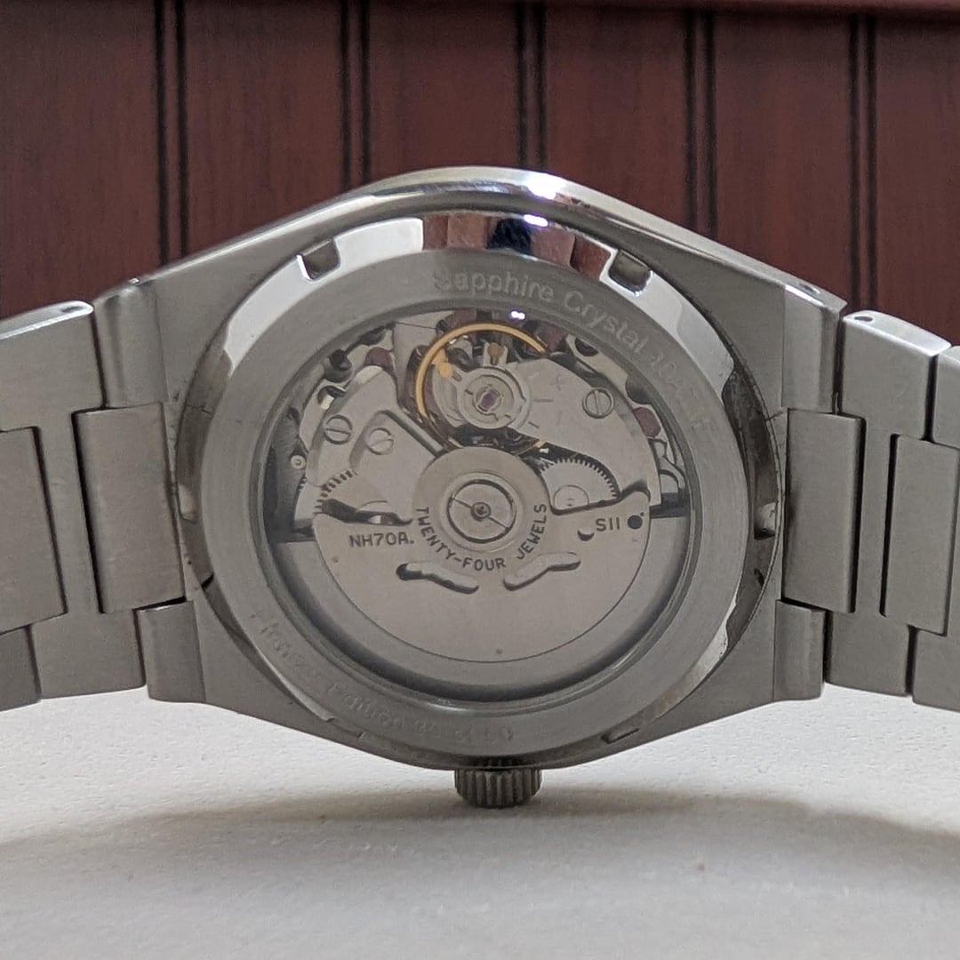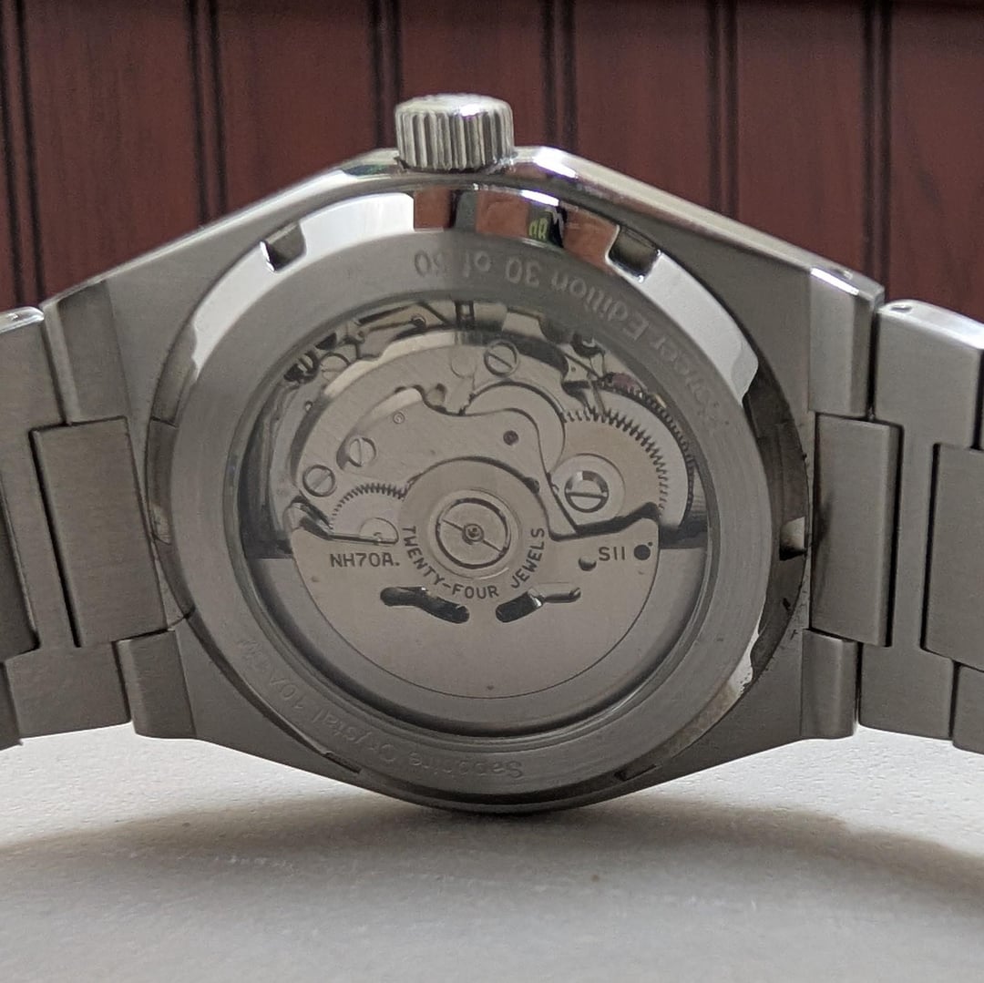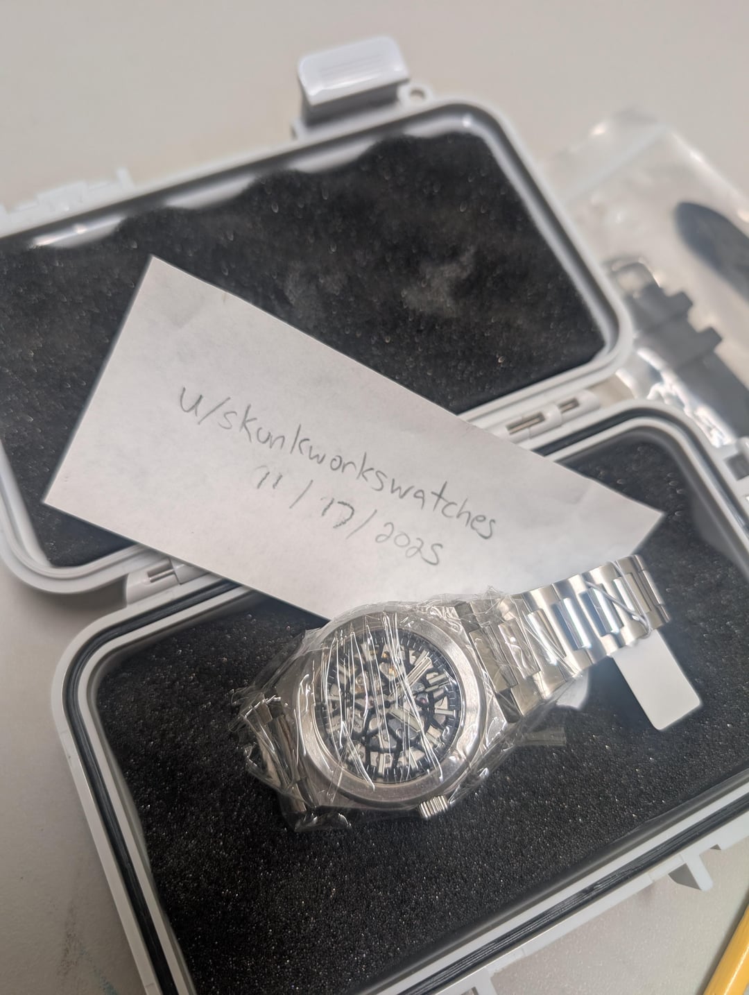 $200 net to me via PayPal, Venmo or Zelle, I'll pay for conus shipping. No trades please. Sleek looking integrated bracelet watch customized with skeletonized dial and movement! Using Zelos Hammerhead handset, so you know the lume is good. Also includes integrated vulcanized rubber strap, unused. Versatile and beautiful, this I've can be dressed up or down. I'm the original owner, only worn maybe 5 times. You'll get the full kit, everything it originally came with, case, all bracelet links, vulcanized rubber strap And strap tool. Everything is working as it should, no issues. Specs: 39.5mm Case Diameter 45mm Lug to Lug Diameter 11mm Thickness Sapphire Crystal Individually-Numbered Screw-down Sapphire Case Back Screw-down signed crown NH70 skeletonized Movement from Seiko - with hacking and winding Brushed Stainless Steel Bracelet with Polished Mid-Links Fitted Vulcanised Rubber Strap Water Resistant to 100m