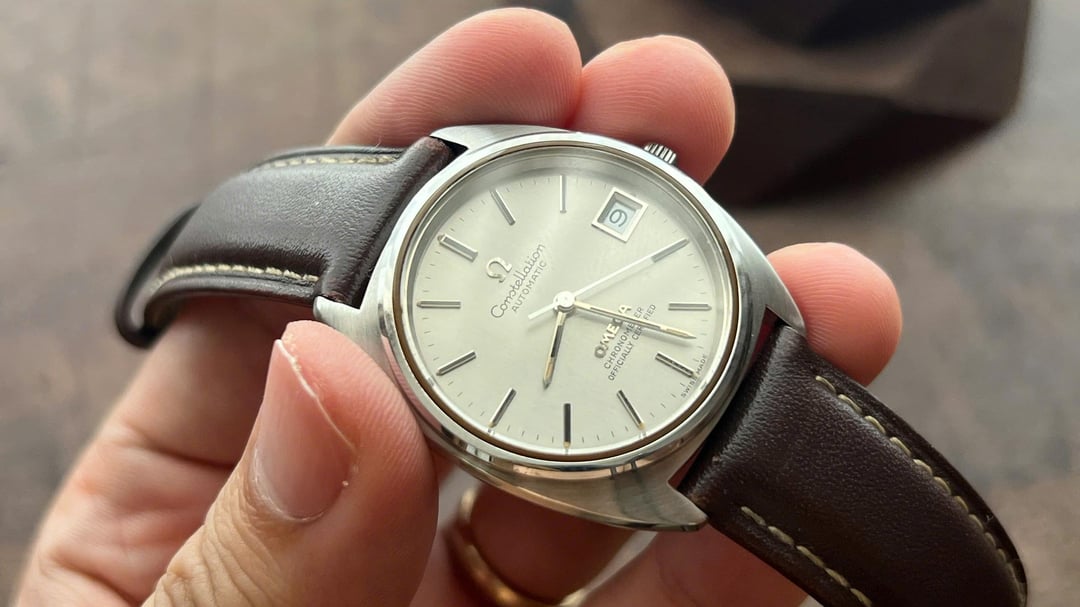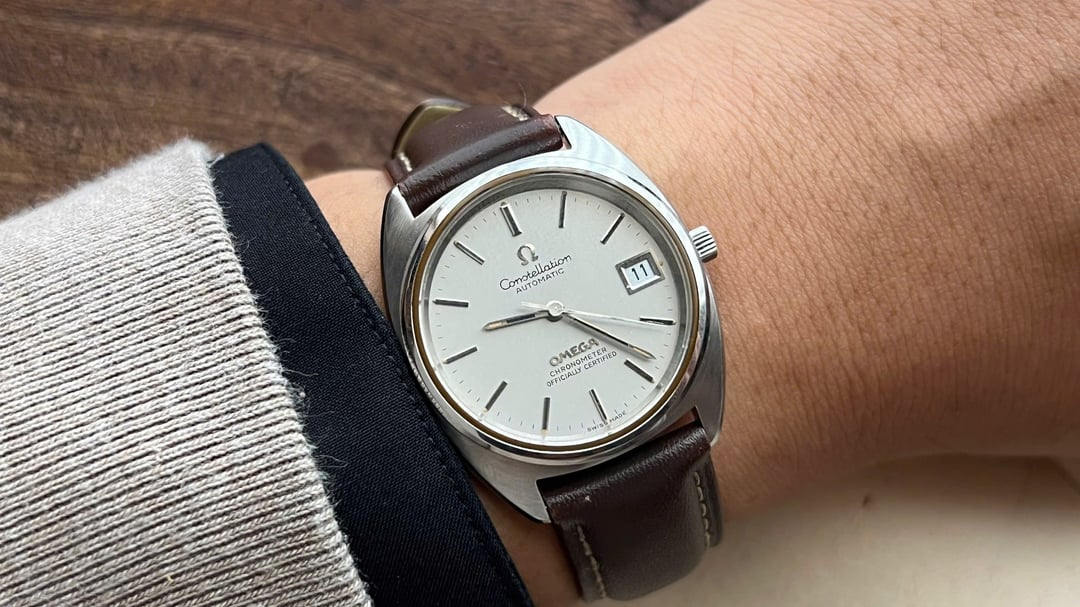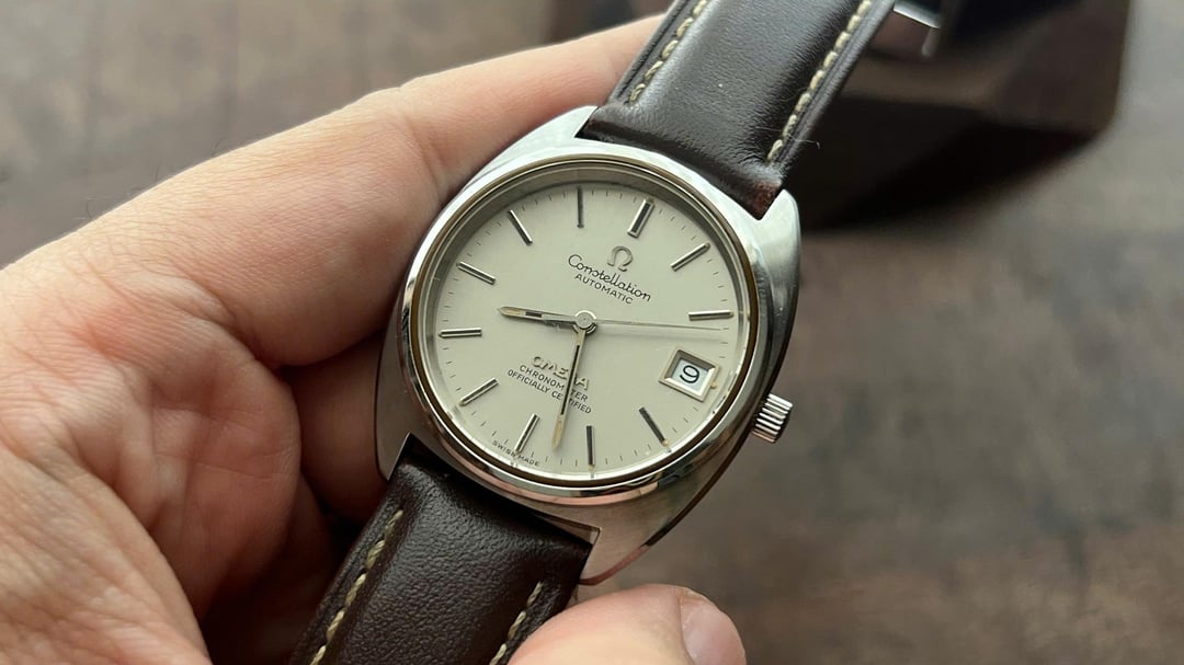 Hi everyone, Up for sale is a clean and well-presented **1972 Omega Constellation ref. 168.0056** in stainless steel, powered by the chronometer-rated **Cal. 1011**. This is one of the slimmer Constellation designs of the era, with a crisp silver dial that looks great on wrist. The movement has been **freshly serviced**, so it’s keeping time well and ready for regular wear. # Condition **Dial:** Original silver sunburst dial with sharp text, applied Omega logo, and clean baton markers. No spotting, moisture marks, or retouch signs. Lume plots and hands show even, honest aging. It presents beautifully both in hand and on wrist. **Case:** Stainless steel case in good overall condition. It has been polished in the past, but the shape remains balanced with clean edges and no harsh damage. Brushed mid-case surfaces still show nicely and the watch wears comfortably. **Caseback:** Correct Constellation observatory medallion. The dome and line details remain clear, though **some of the stars have been softened from a previous polish**—common on this reference due to their shallow factory engraving. The caseback still presents very well on wrist. **Crown:** Signed Omega crown, winding and setting smoothly. **Movement:** Chronometer-rated **Cal. 1011** automatic with quick-set date. Freshly serviced: disassembled, cleaned, oiled, reassembled, and regulated. Running strong with reliable accuracy. Quick-set date functions properly. **Strap:** Aftermarket brown leather strap with aftermarket buckle. # Price: $740 USD Includes **insured worldwide shipping via DHL Express**. I will **cover import tariff/duty** if any # Payment & Terms Payment via **Wise, bank transfer, or PayPal G&S** (buyer adds 4.5%). Ships quickly and securely. All sales final unless misrepresented. Happy to provide extra photos, wrist shots, or a video anytime. **Note:** As with all vintage watches, this should not be considered waterproof. Keep it away from water, steam, and high humidity. Feedback available on Reddit and Omega Forums.