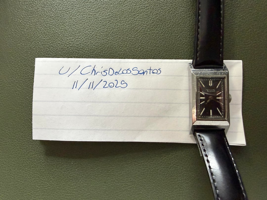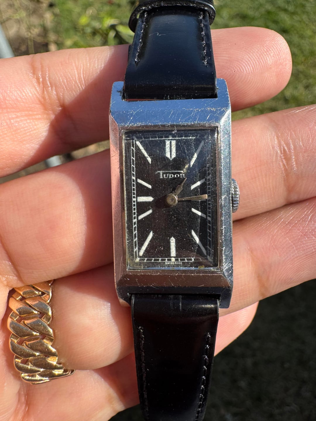 Vintage Tudor Tank -Details: Steel case (unpolished), hesalite crystal, new black leather straps. Rolex signed case on the inside. Back when Rolex and Tudor shared the same cases, before the shield and rose logos. -$1,297 shipped -Includes shipping (US). I accept Venmo, Zelle, CashApp, and PayPal (+4% if using G&S) -Case size: 19x32mm including crown -Movement: manual winding, recently serviced -Timestamp: https://imgur.com/a/kj3uJ3Z -TikTok Review: https://www.tiktok.com/t/ZTM8Sgs3R/ IG: @ColeccionDeLosSantos TikTok: @Chris.DeLosSantos